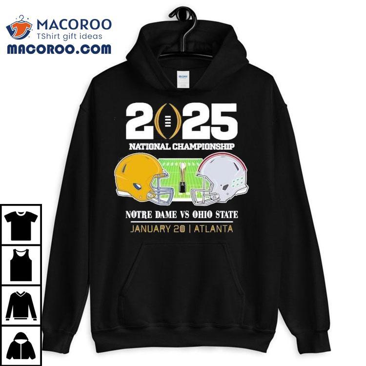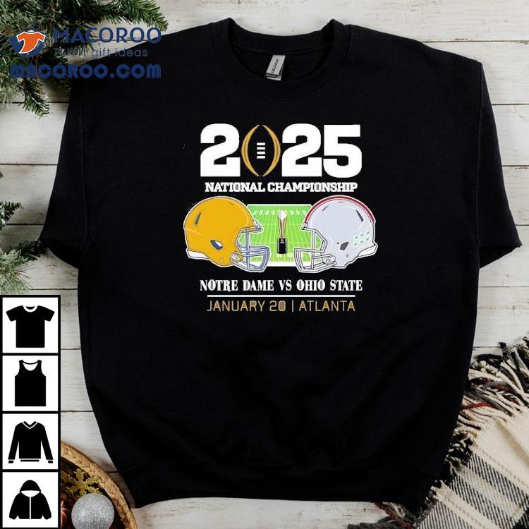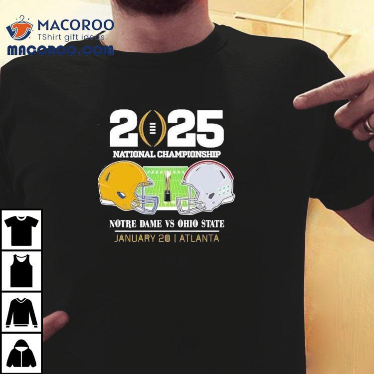 2025 College Football National Championship Notre Dame Fighting Irish Head To Head Ohio State Buckeyes Helmet Matchup In Atlanta Shirt