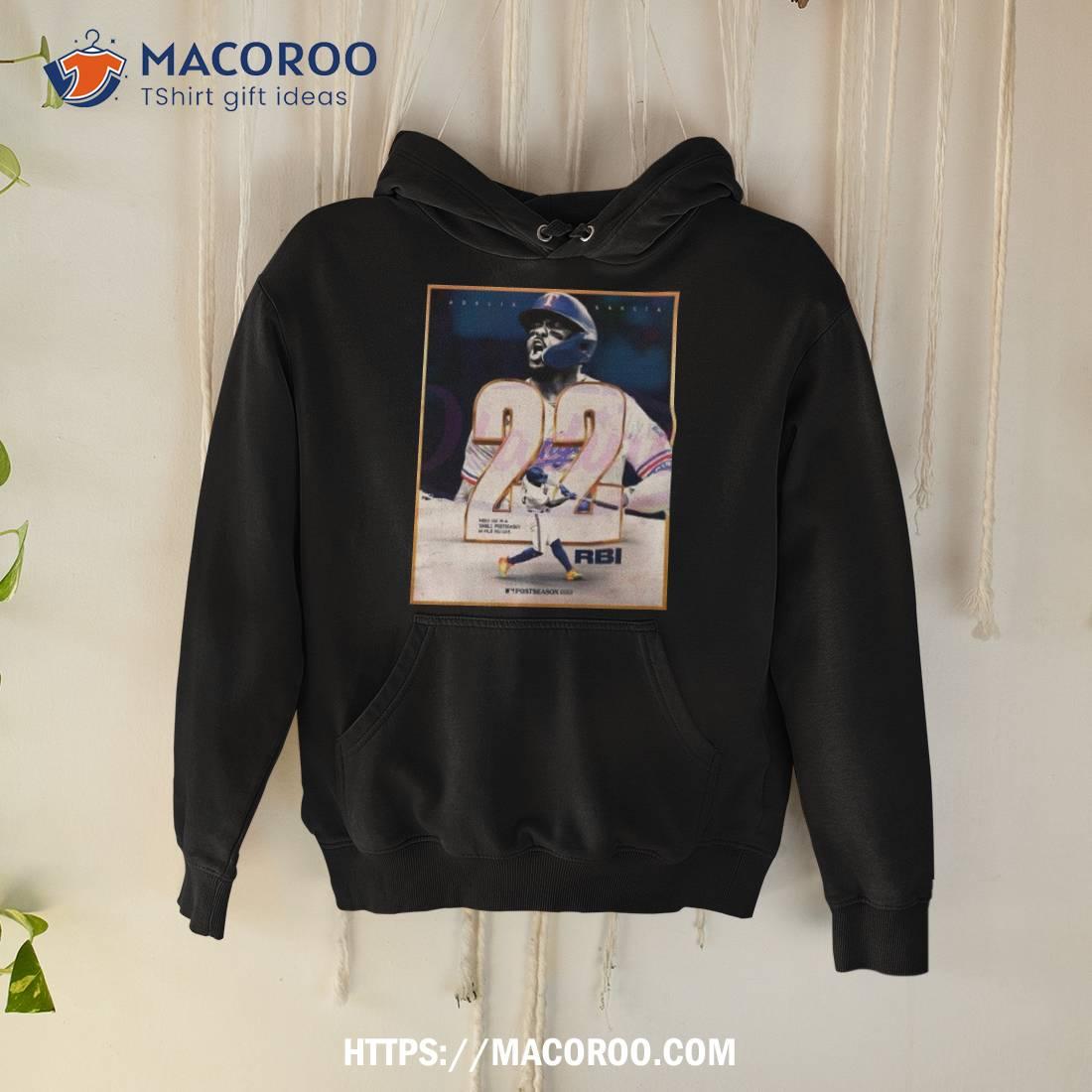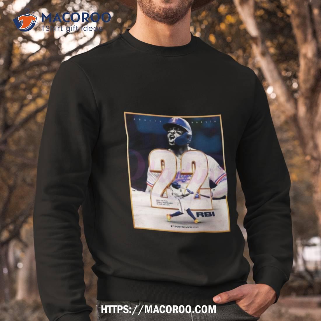 A great shirt for any Adolis Garcia fan! It celebrates his most RBIs in a single postseason feat.
