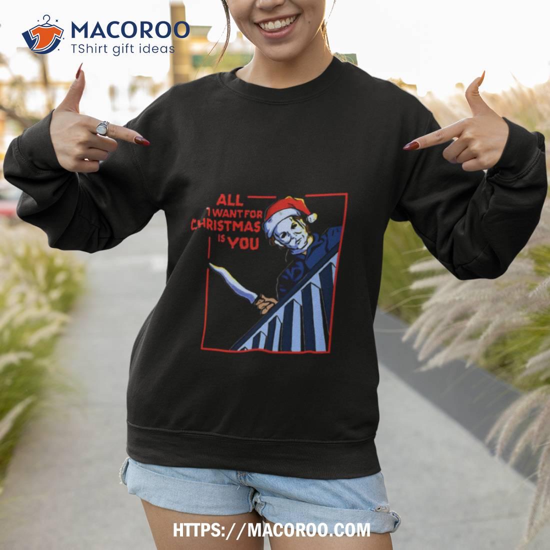 The “All I Want For Christmas Is You” Micheal Mayers shirt is a must-have for any fan. A fun and festive design!