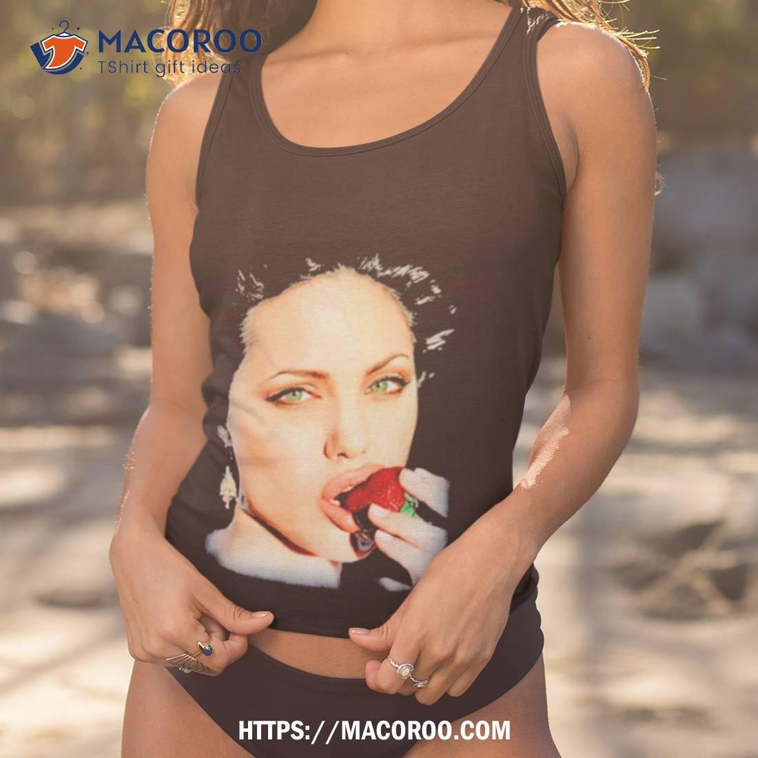 Fun and stylish! Angelina Jolie’s Bite Strawberry Shirt is a great way to add some flair to any wardrobe.