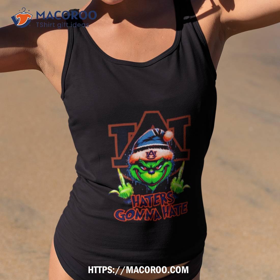 This shirt is perfect for Auburn Tigers fans that want to show their school spirit and have a little fun. The Grinch Santa Middle Finger design is sure to turn heads and make a statement – Haters Gonna Hate!