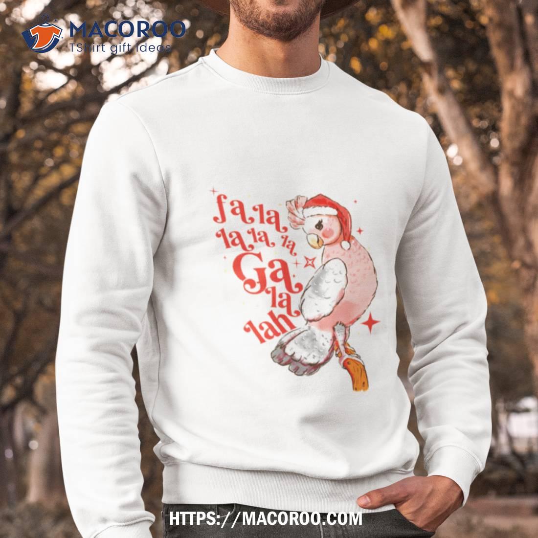 A great shirt for the holidays! Cheerful design featuring a cute Australian galah bird and festive “Falala” text. Perfect for spreading holiday cheer!
