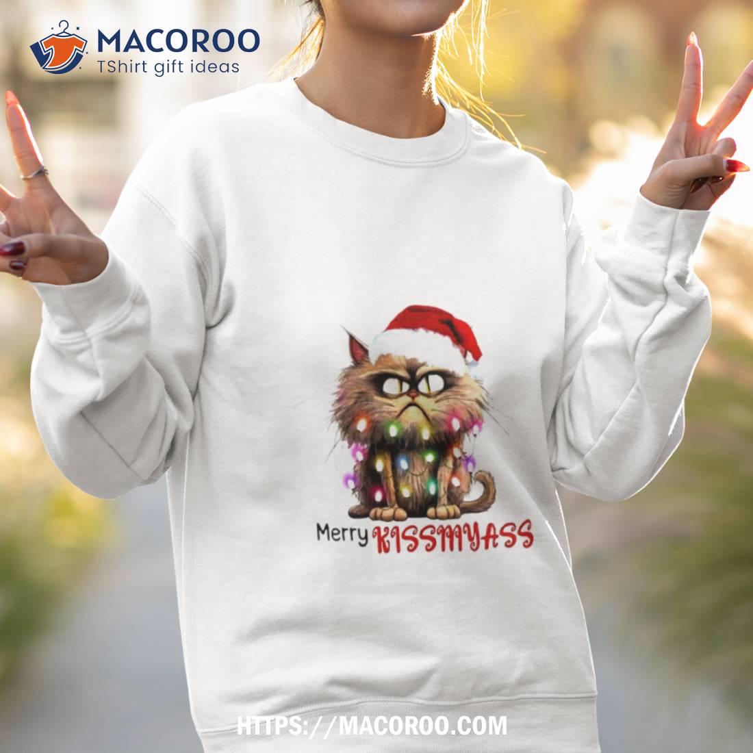 Cute & festive! Love this Cat Merry Kissmyass Christmas Lights Shirt.