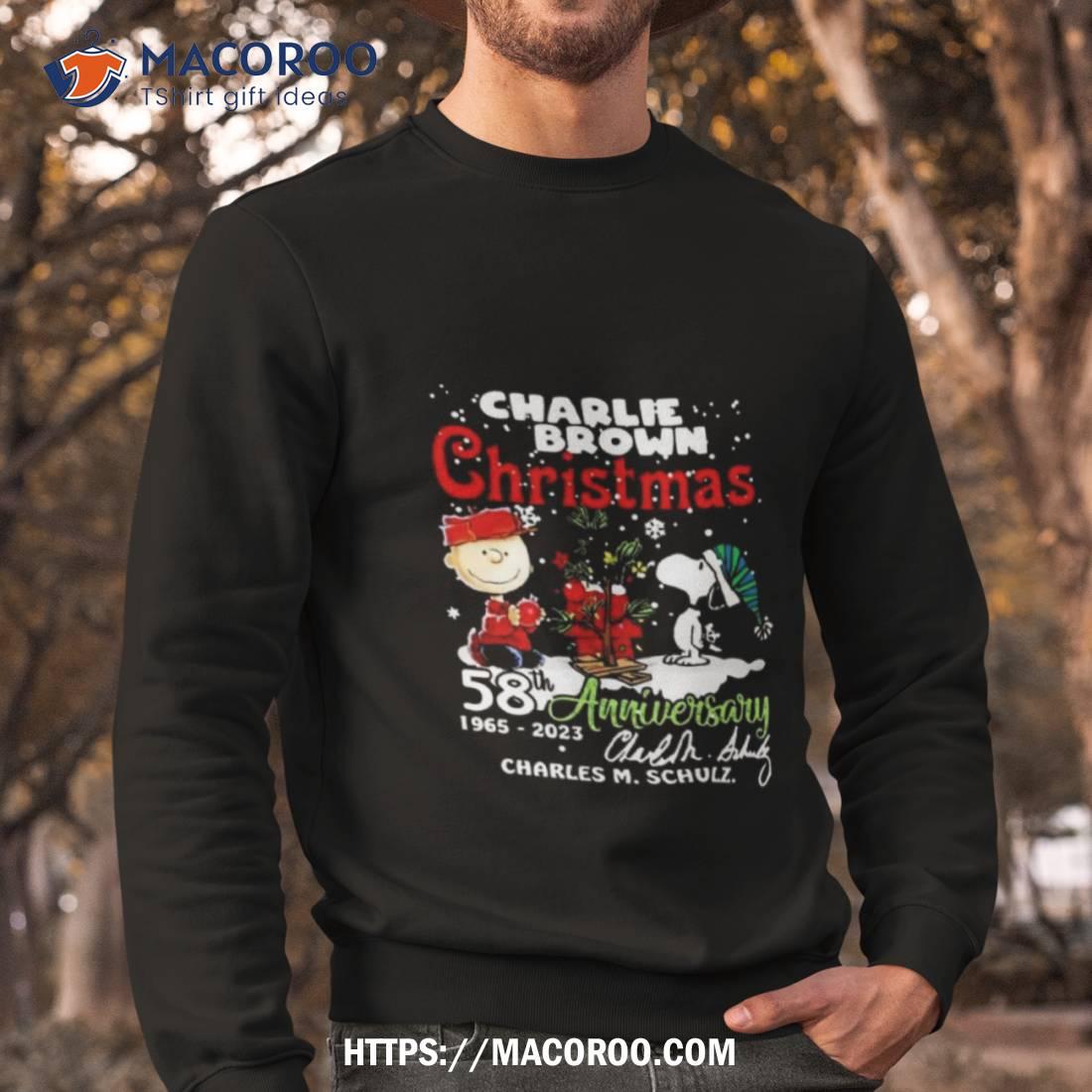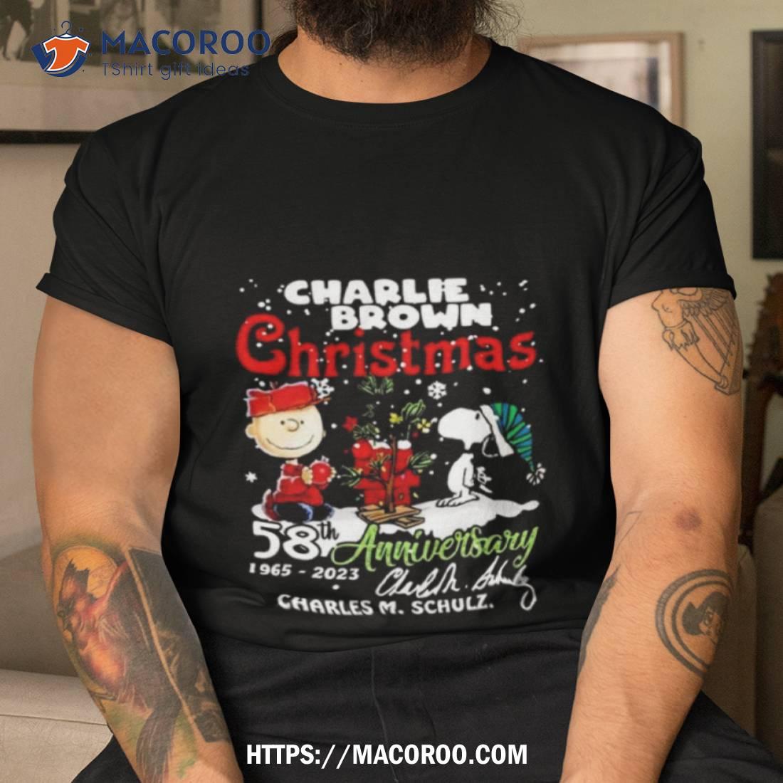 A must-have for any Charlie Brown fan! Celebrate the 58th anniversary of A Charlie Brown Christmas with this classic Snoopy shirt. 1965-2023 Charles M Schulz.