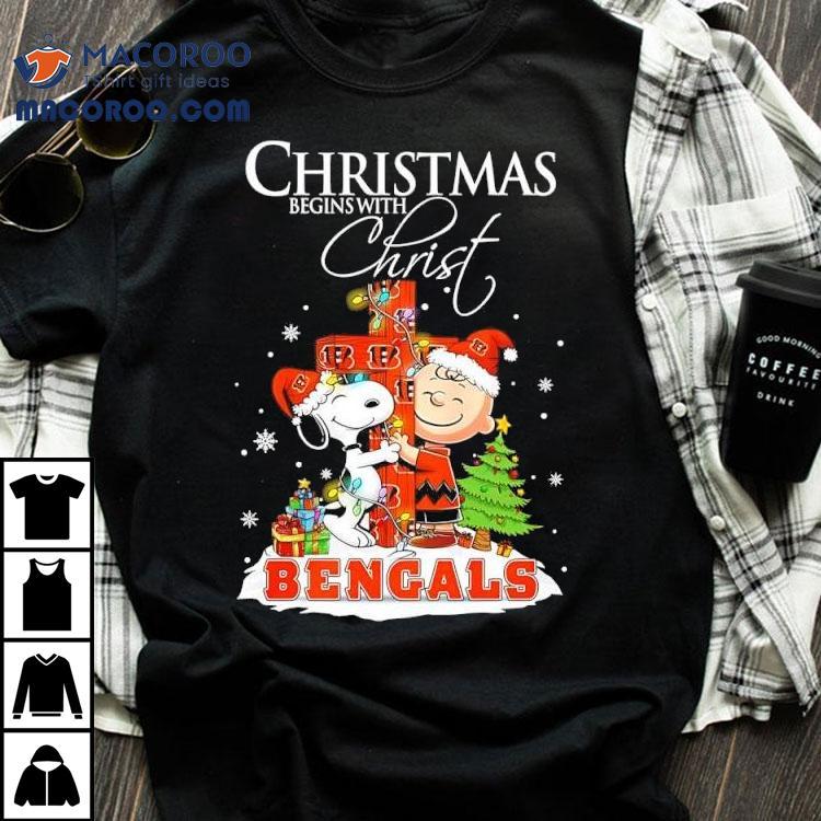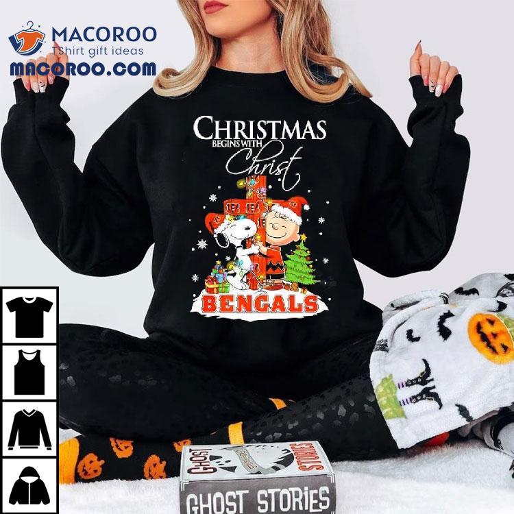Christmas Begins With Christ Cincinnati Bengals X Snoopy And Charlie Brown Shirt