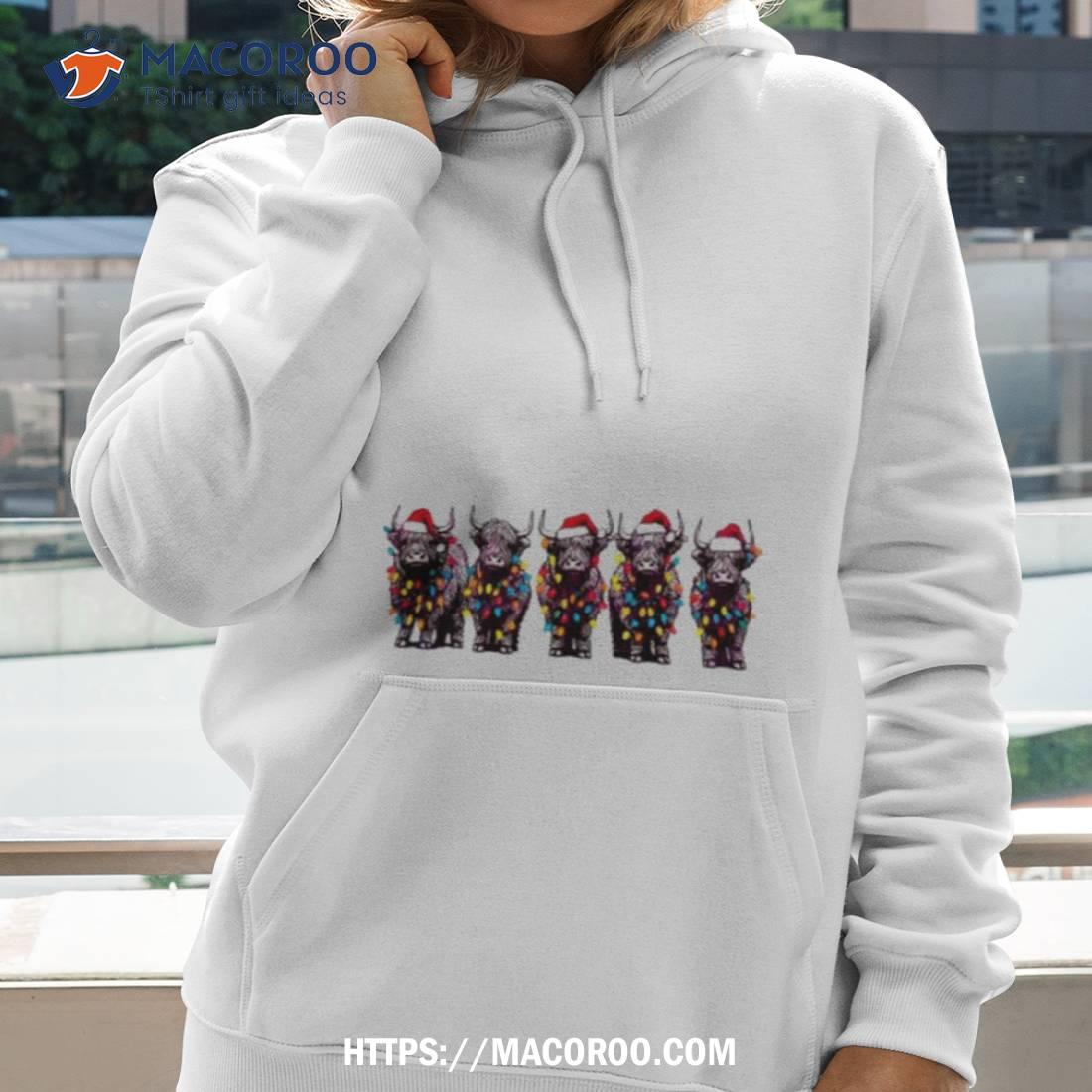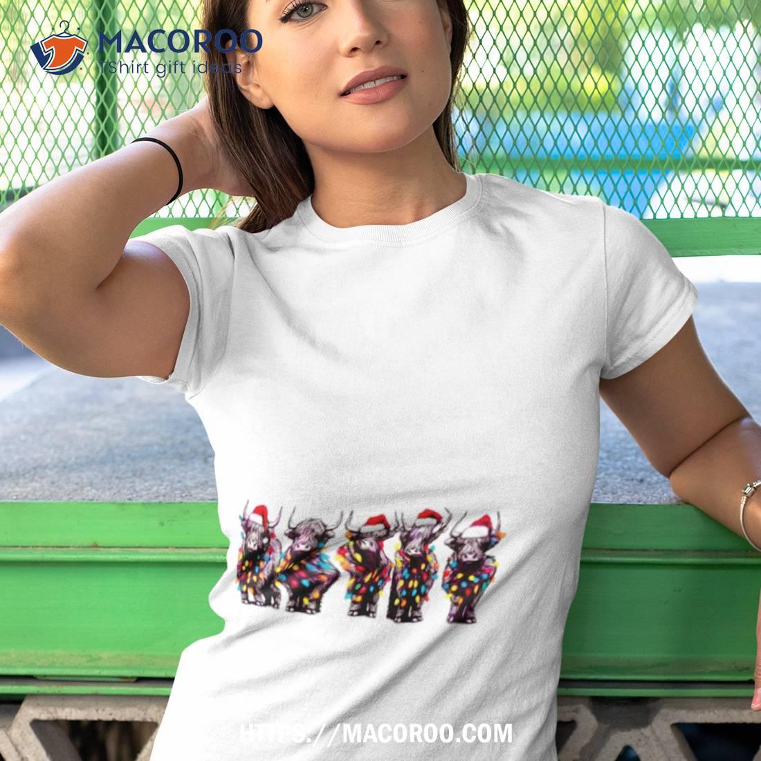 Christmas Cows With Santa Hat And Christmas Light Shirt