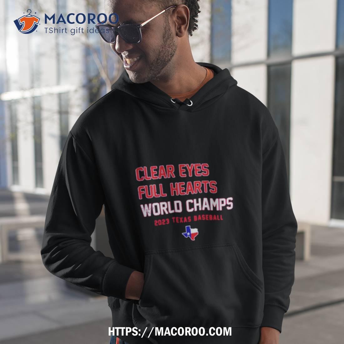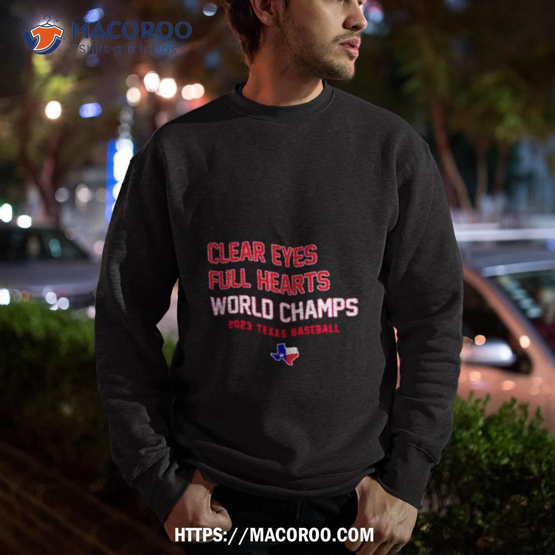 Fun and stylish Texas baseball shirt perfect for any fan. Clear Eyes Full Hearts World Champs 2023 is a great way to show your team pride!