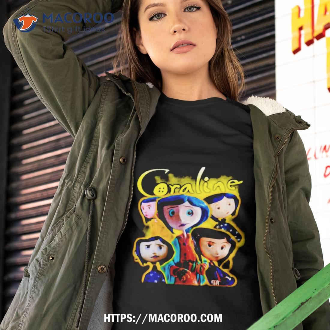 Fun and festive Halloween shirt featuring Coraline. Perfect for the season!