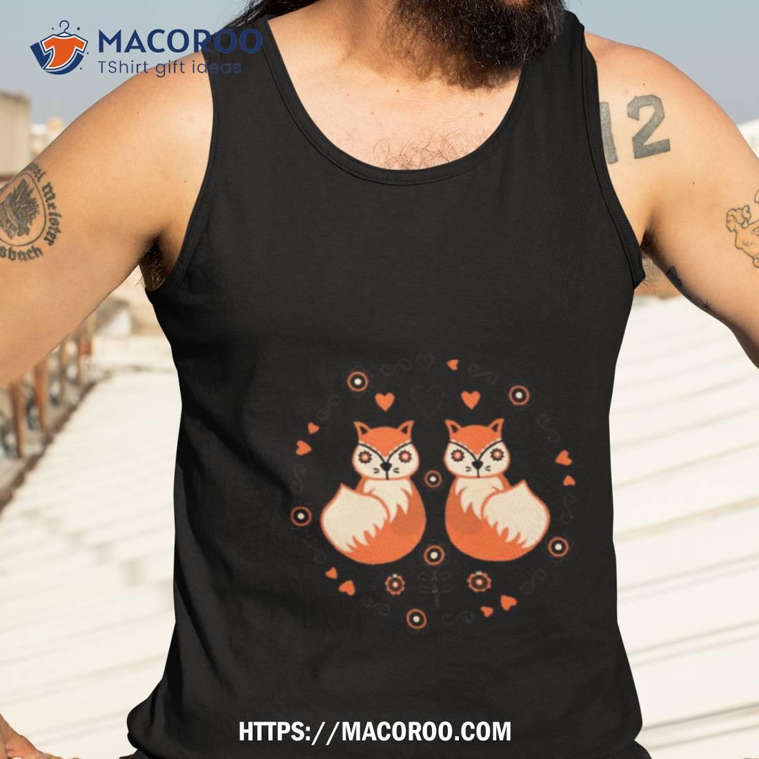 Cute Fox Cottagecore Aesthetic Vintage Botanical Scandinavian Folk Art Shirt