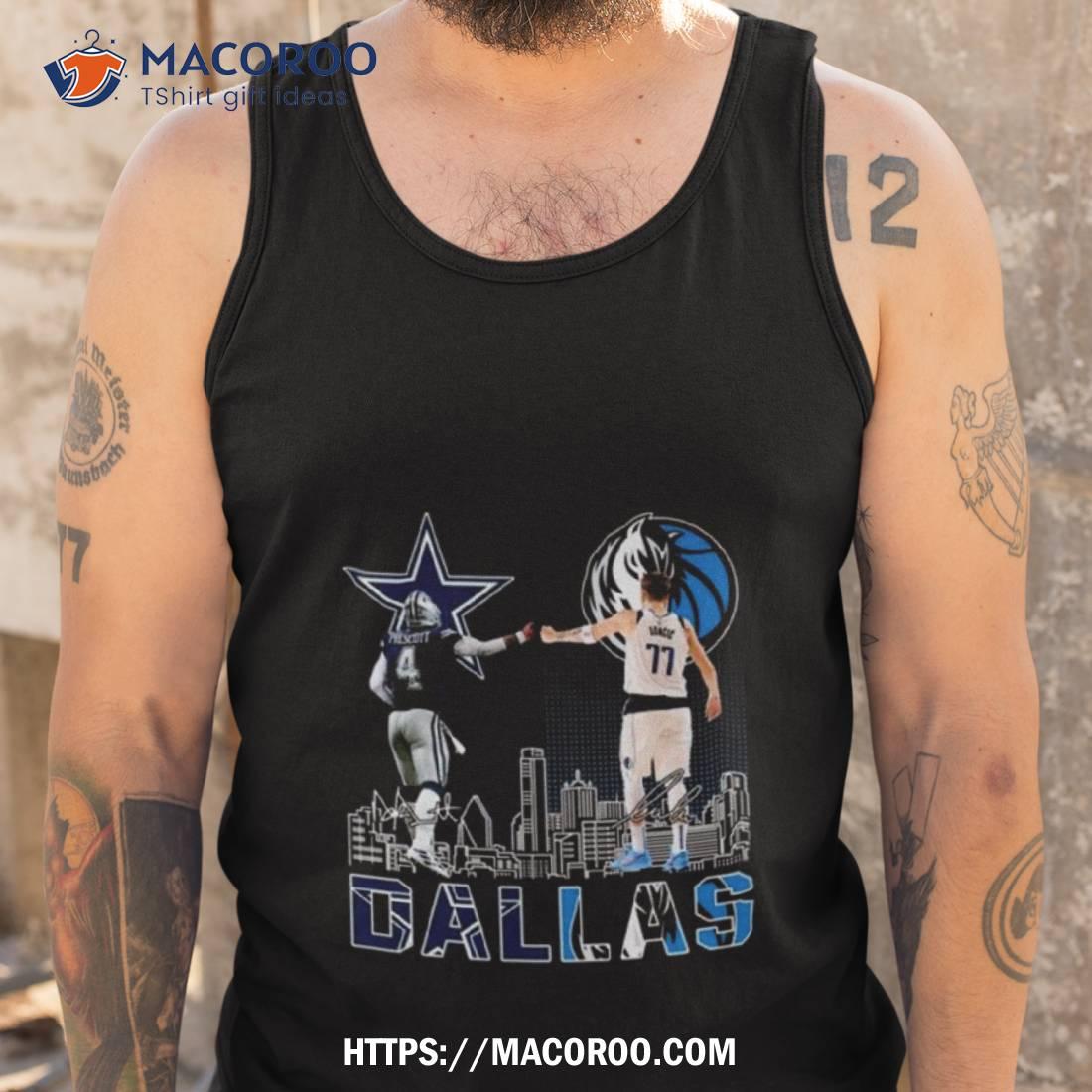 A great shirt to commemorate the 2023 City Championship. The Dallas City Sports Prescott and Doncic signatures look great!