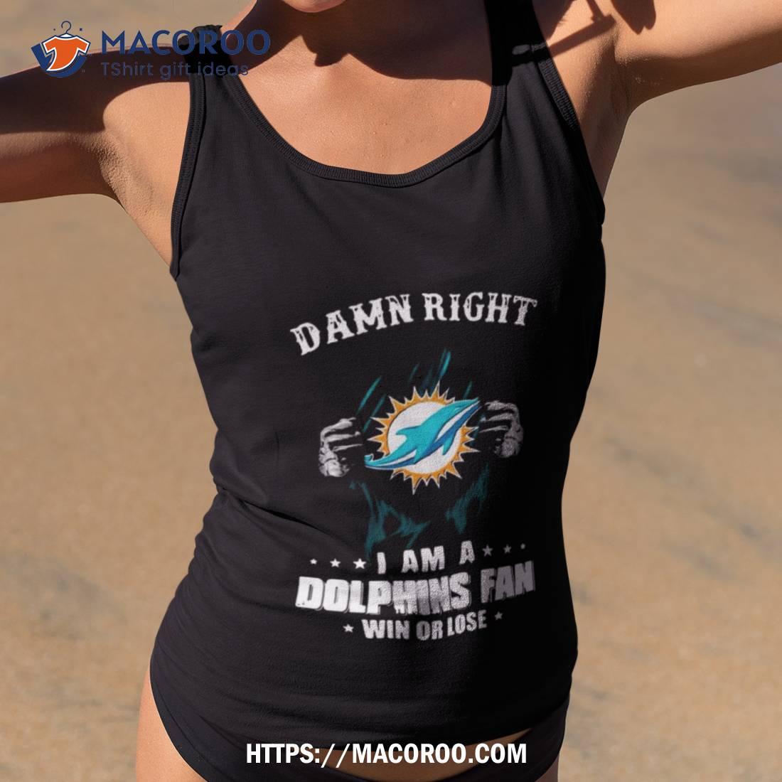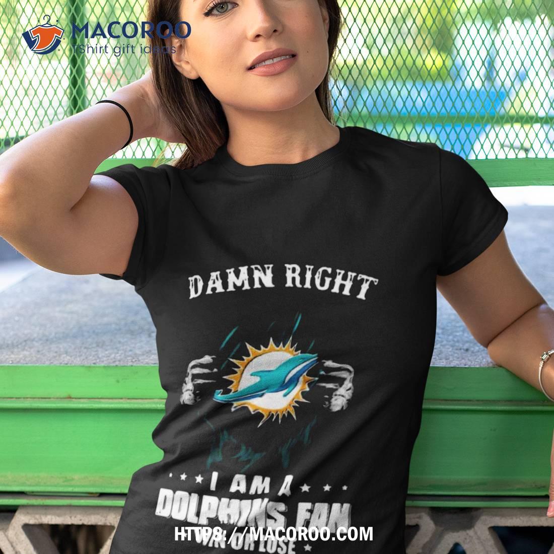 Damn Right I Am A Miami Dolphins Fan Win Or Lose Logo Design Shirt