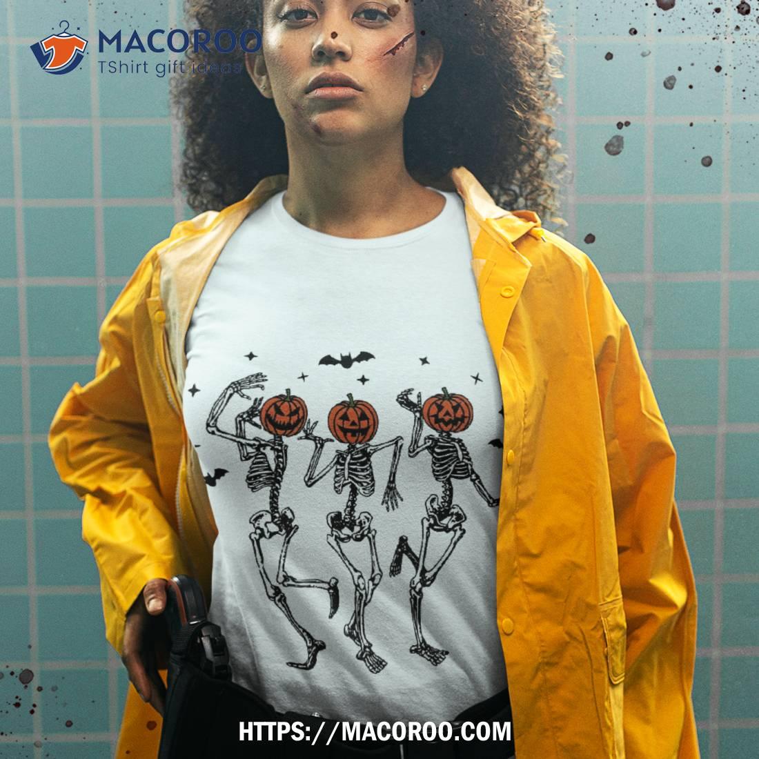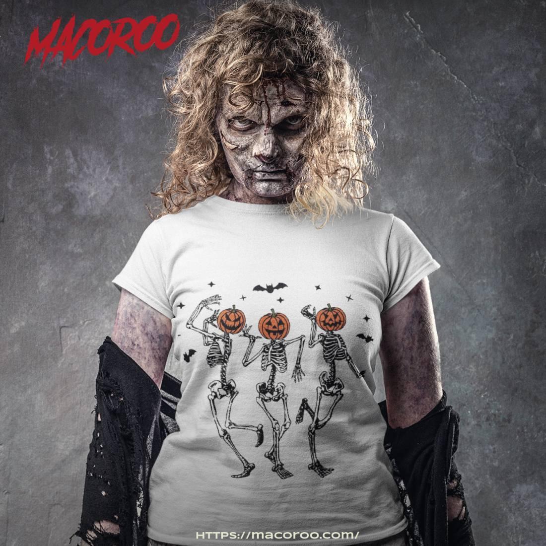 Dancing Skeletons With Pumpkin Heads Funny Halloween Shirt