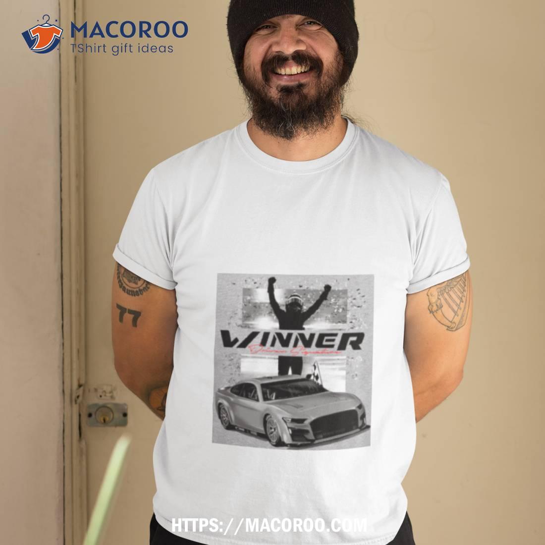 Denny Hamlin’s 2023 Bass Pro Shops Night Race Winner Shirt is a must-have for any NASCAR fan! Great quality and design.