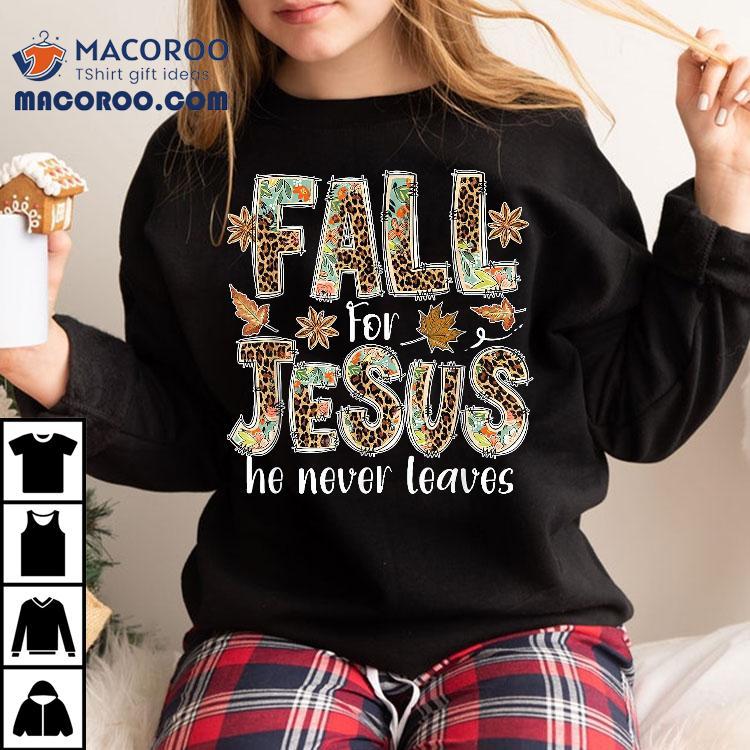 Fall For Jesus He Never Leaves Boho Leopard Kids Shirt