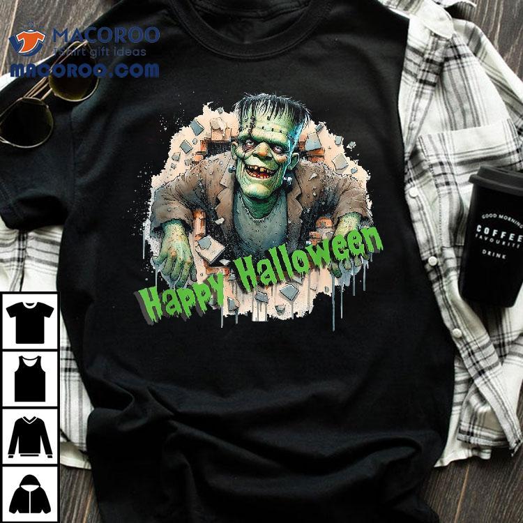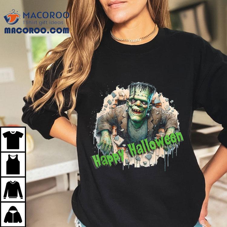 Frankenstein Horror Graphic Spooky Motif Happy Halloween Shirt