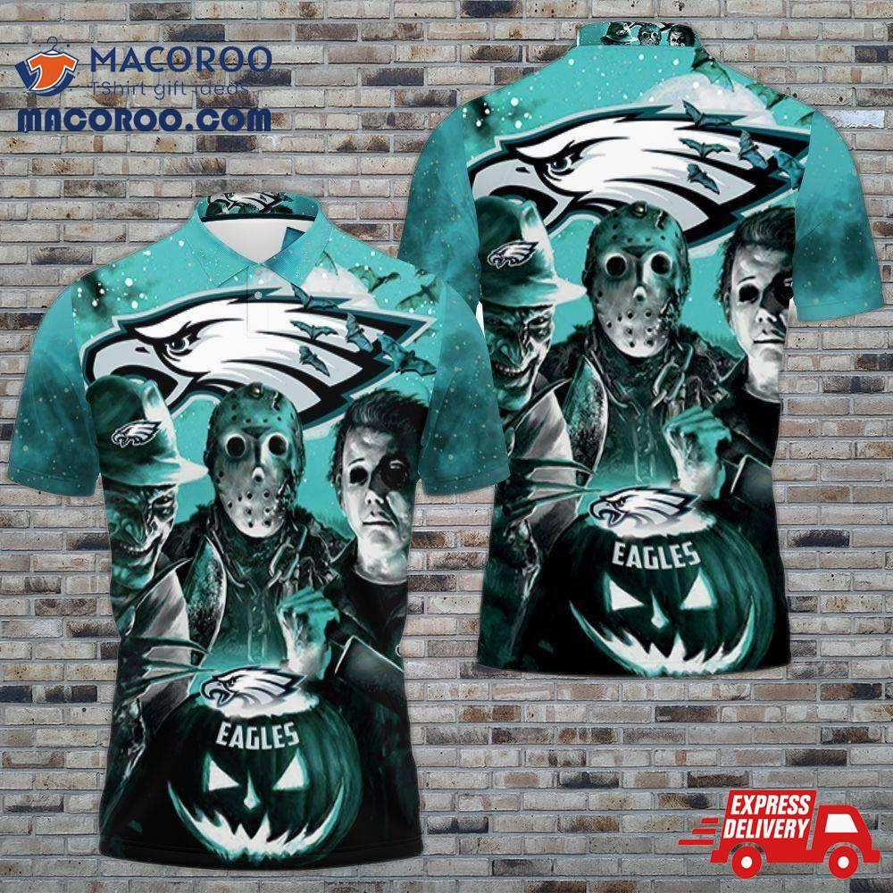 Freddy Jason Michael Myers Loves Philadelphia Eagles Pumpkin Head Halloween 3D Polo Shirt
