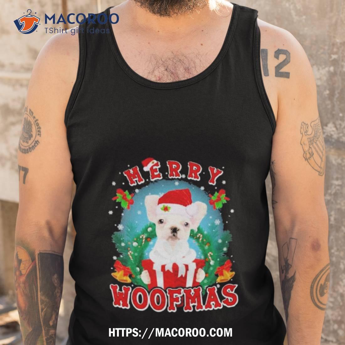 This festive shirt is perfect for the French Bulldog lover! The Santa hat and “Merry Woofmas” make it a great gift for Christmas 2023.