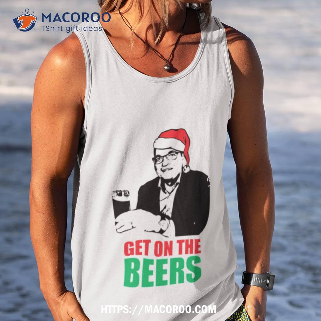 Funny Meme Humorous Dan Andrews Get On The Beers Christmas Santa Shirt