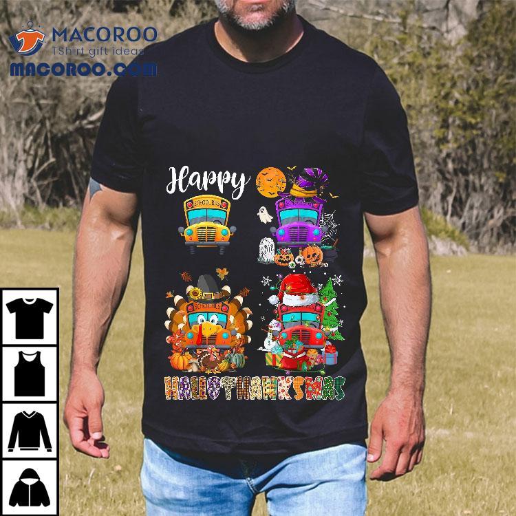 Funny School Bus Witch Turkey Santa Happy Hallothanksmas Boy Shirt