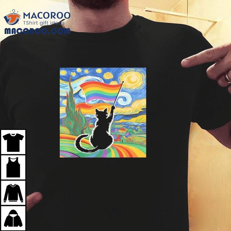 Gay Pride Cat Art Cat Starry Night Style Lgbtq Pride Shirt