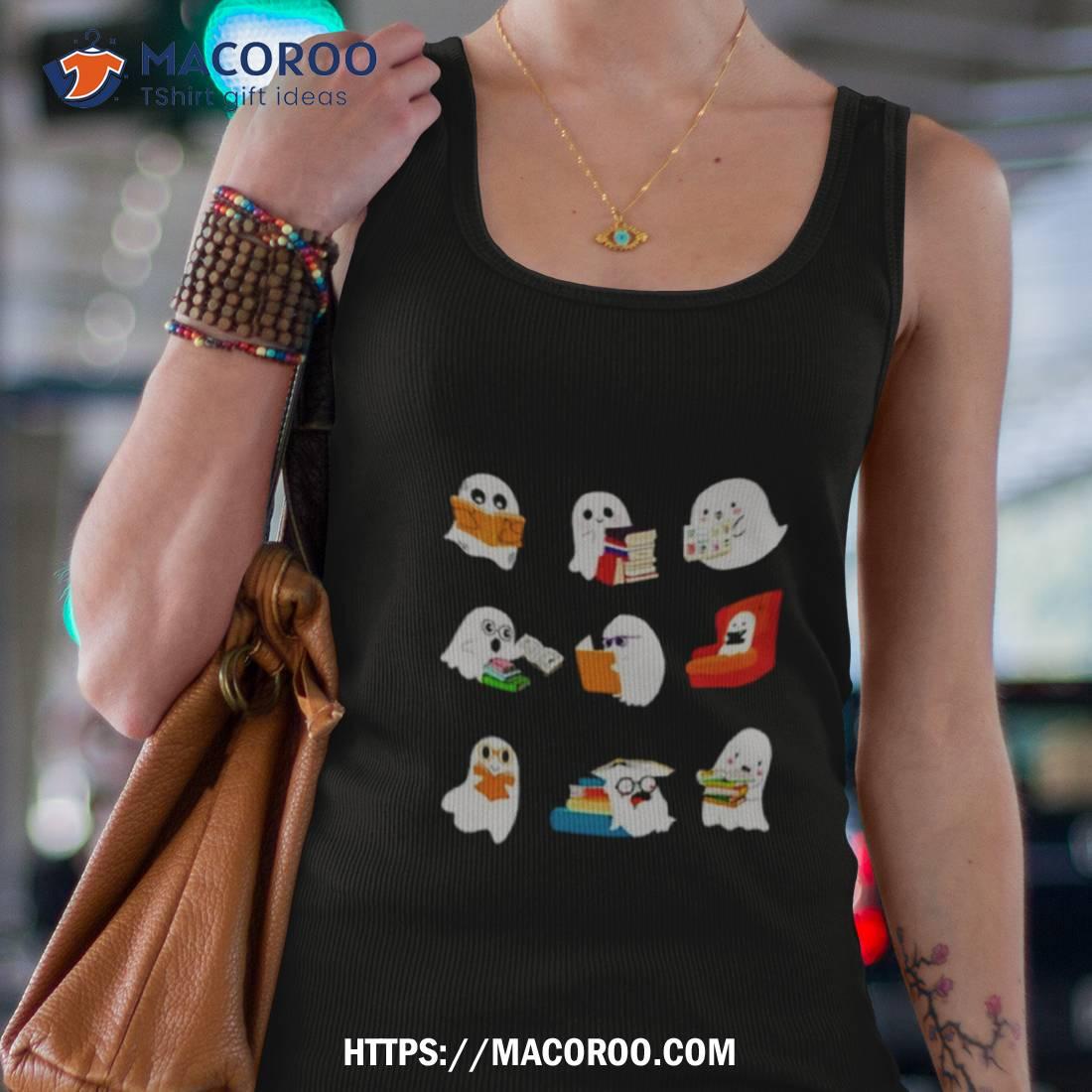 Super cute ghost reading book Halloween shirt! Perfect for any spooky occasion.