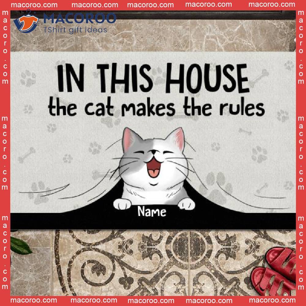Gifts For Cat Lovers, Personalized Doormat, In This House The Cats Make Rules Outdoor Door Mat