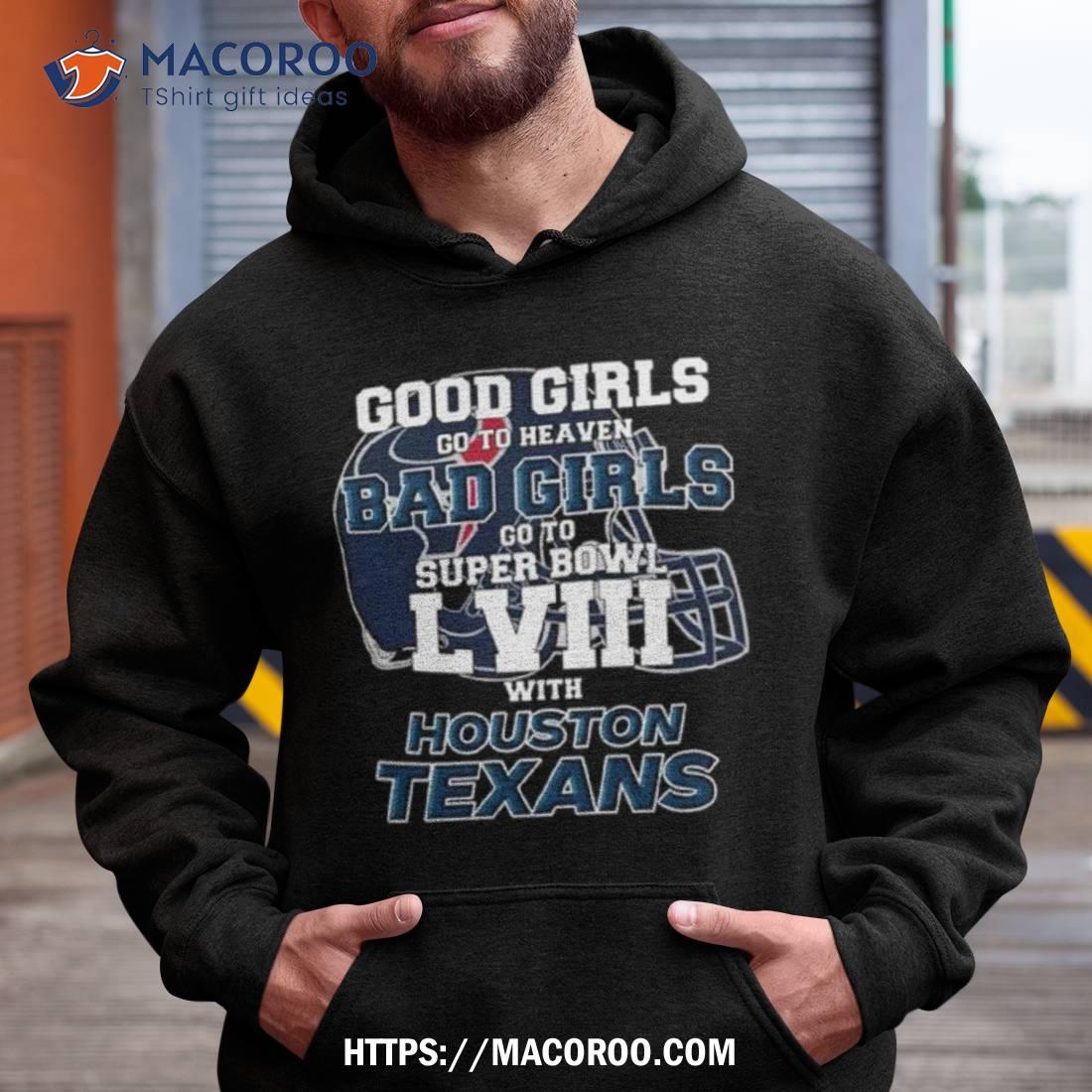 A great way to show your support for the Houston Texans and Super Bowl LVIII. The “Good Girls Go To Heaven, Bad Girls Go To Super Bowl LVIII With Houston Texans T-Shirt” is a must-have!