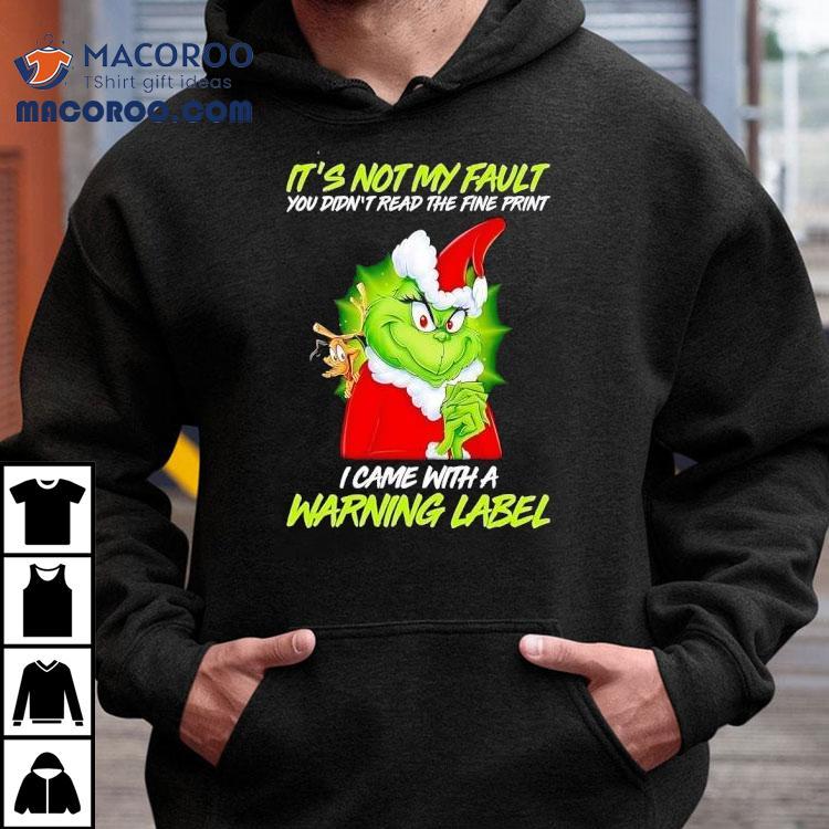 Grinch It’s Not My Fault You Didn’t Read The Fine Print I Came With A Warning Label Christmas Shirt
