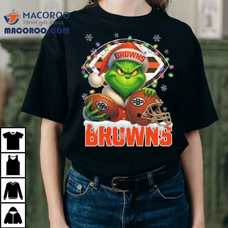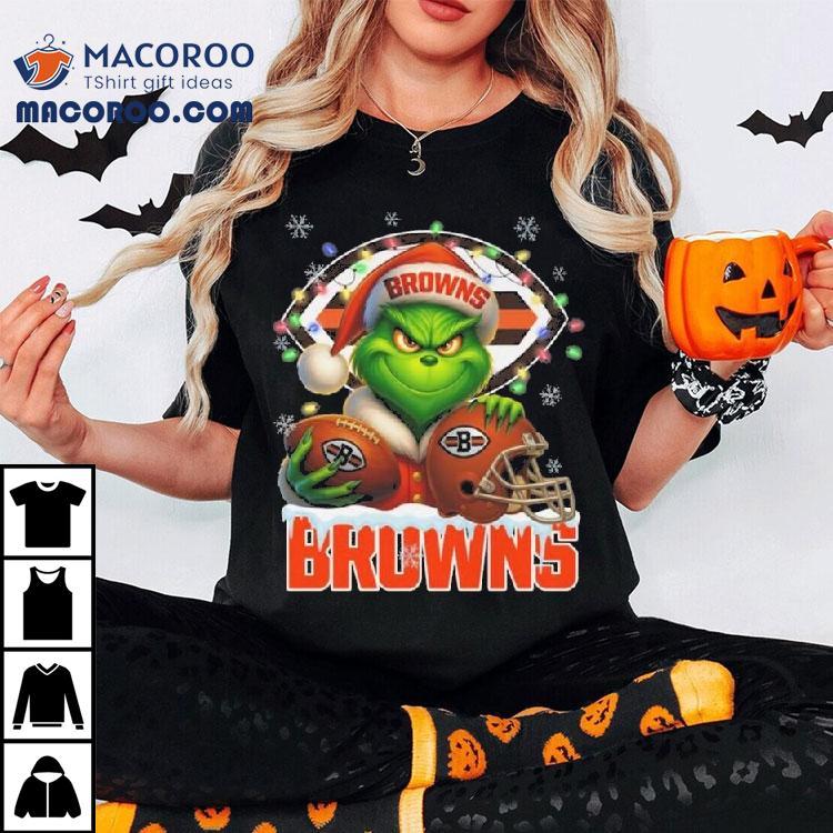 Grinch X Cleveland Browns Ball And Helmet Merry Christmas Shirt