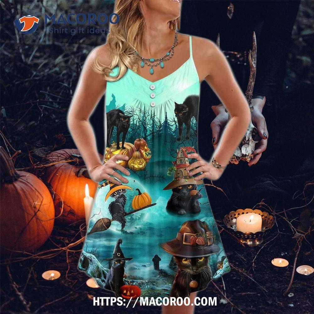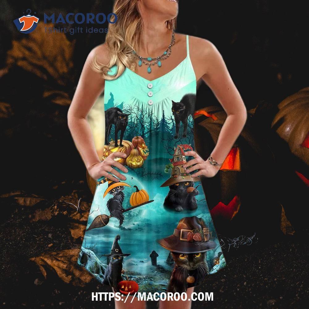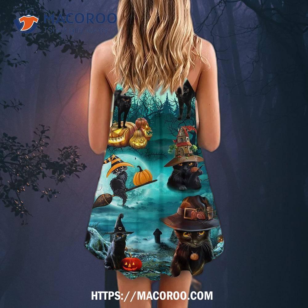 Halloween Black Cat Pumpkin Scary Style Summer Dress