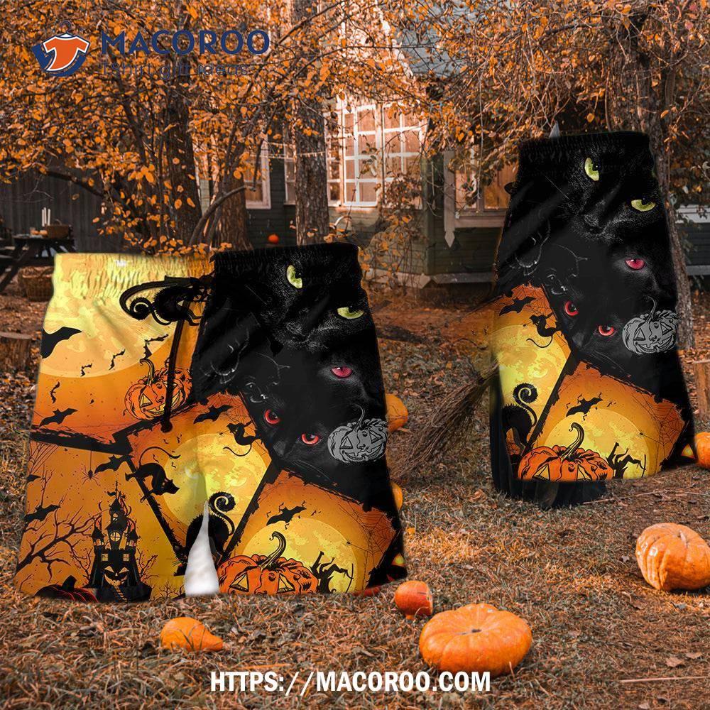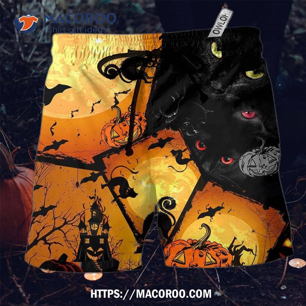 Halloween Black Cat With Yellow Hawaii Shorts