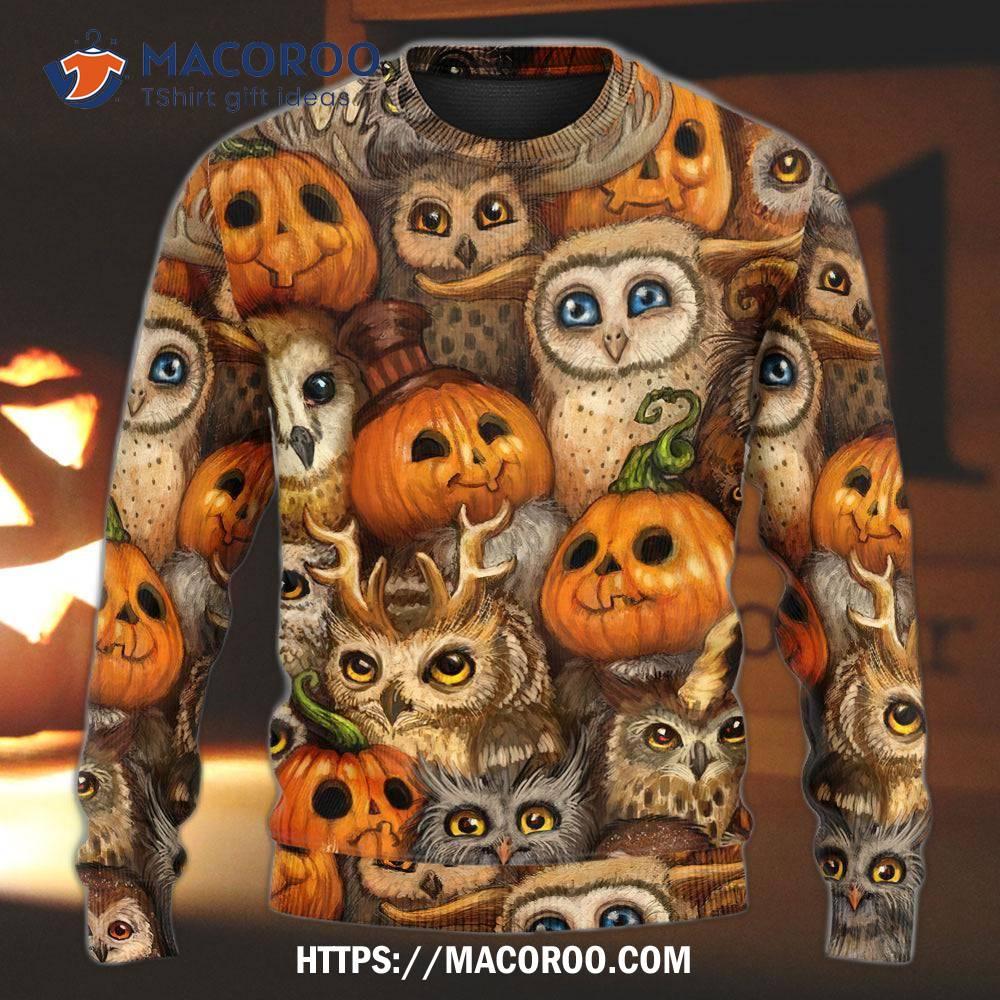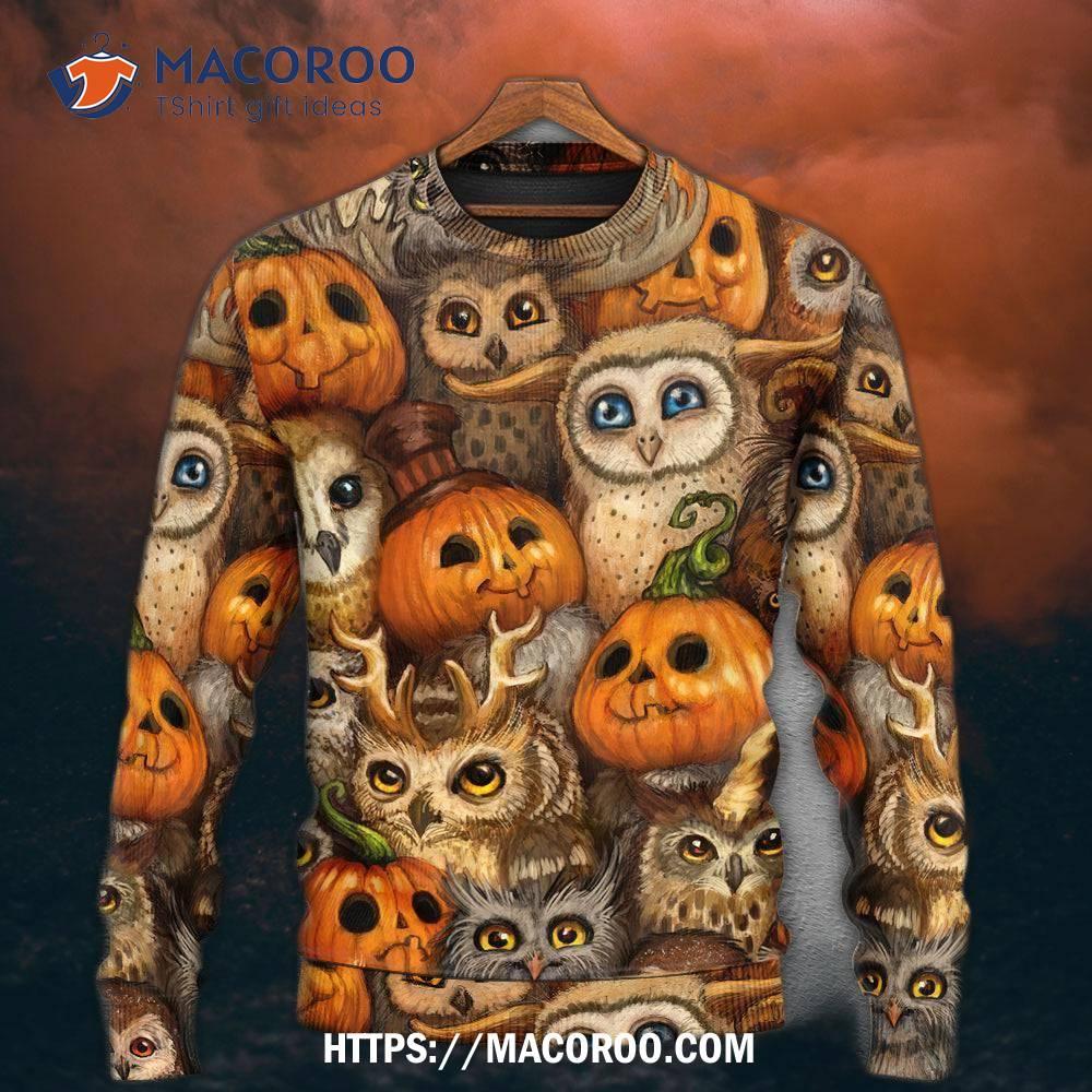 A Halloween owl pumpkin pattern sweater is the perfect way to show off your spooky side this Halloween season. With its vibrant orange and black colors, this unique sweater combines a playful owl design with a classic pumpkin pattern to create an eye-catching look that will make you stand out from the crowd. Whether you’re attending a costume party or trick or treating with the kids, this sweater will be sure to get you into the holiday spirit.If you want another color or a different style, you can visit Halloween.