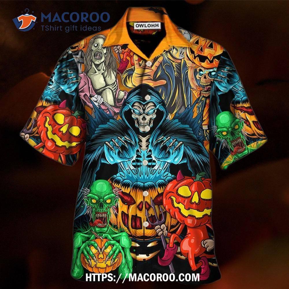 Halloween Scary Skull Pumpkin Horror Art Hawaiian Shirt