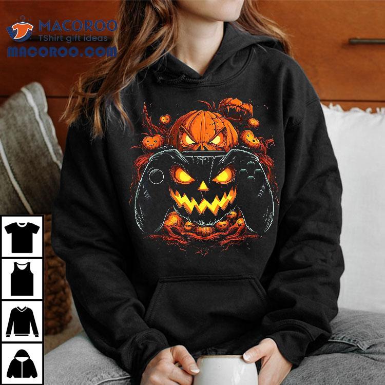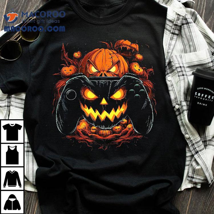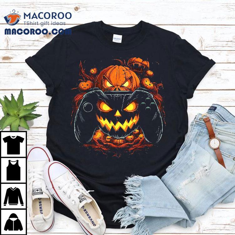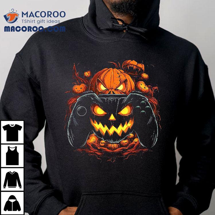 Halloween Shirt Jack O Lantern Pumpkin Face Gamer Gaming
