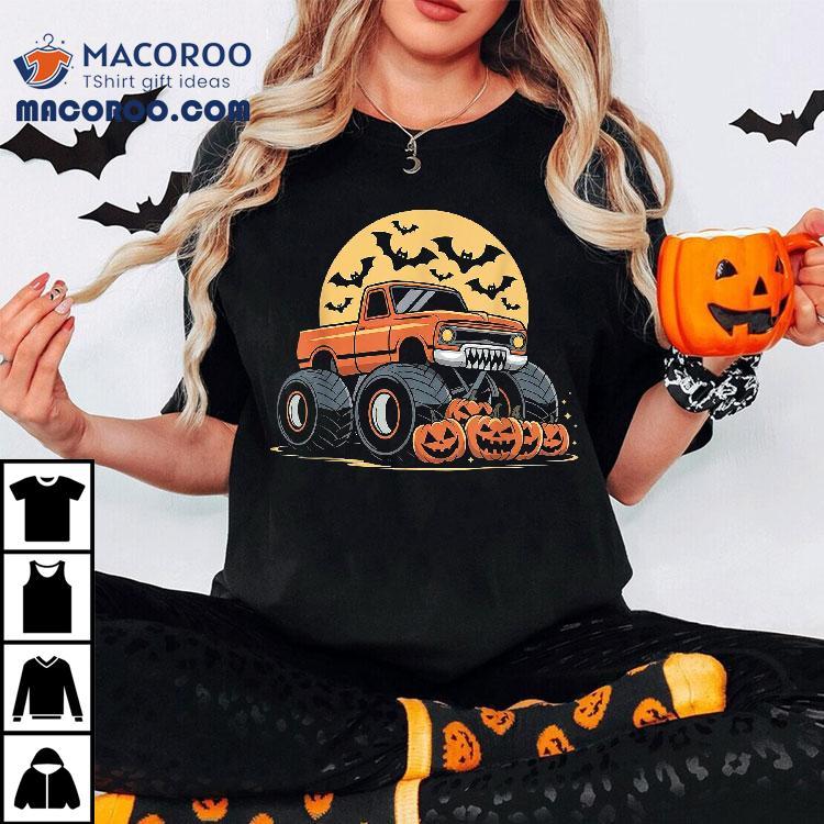 Halloween Shirts For Kids Boys Monster Truck Pumpkins Shirt