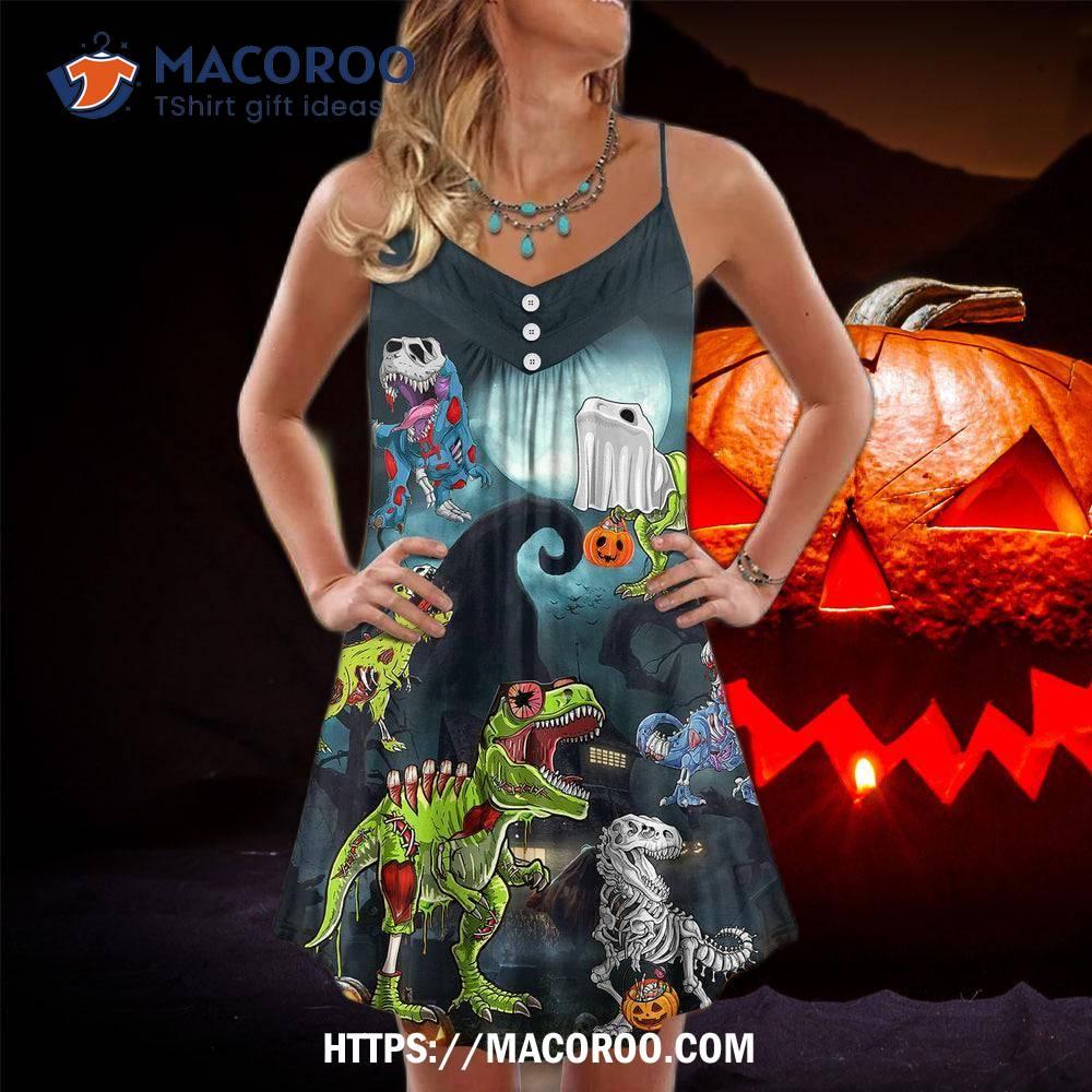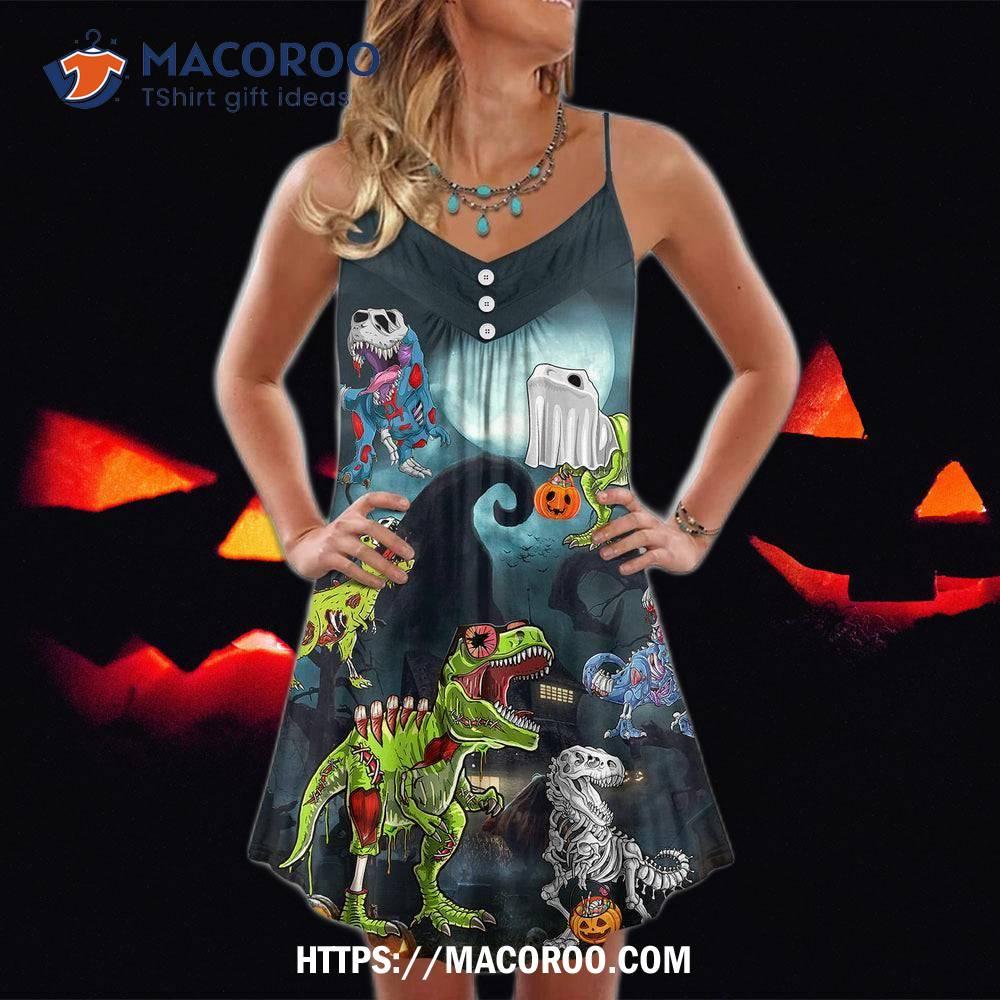 Halloween is a time for all kinds of spooky fun, and this year, the trendiest way to celebrate will be with the Halloween Zombie Saurus Scary Summer Dress! Whether you want to stand out as the life of the party or just have a great costume to wear year-round, this dress has everything you need. It features a unique and eye-catching design with a skeleton print, a skull headdress, and even wings and spikes inspired by classic zombie designs. The dress is also lightweight and comfortable enough to keep you cool on summer days without compromising on the scary factor! When you’re ready to put on a show-stopping costume this Halloween, don’t miss out on the Halloween Zombie Saurus Scary Summer Dress.If you want another color or a different style, you can visit Halloween.