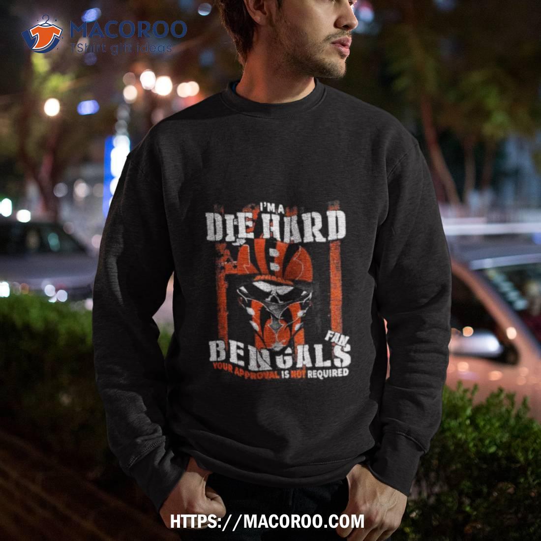 This t-shirt is perfect for any die hard Cincinnati Bengals fan! It features the USA flag and a bold statement that your approval is not required. Great quality and design.