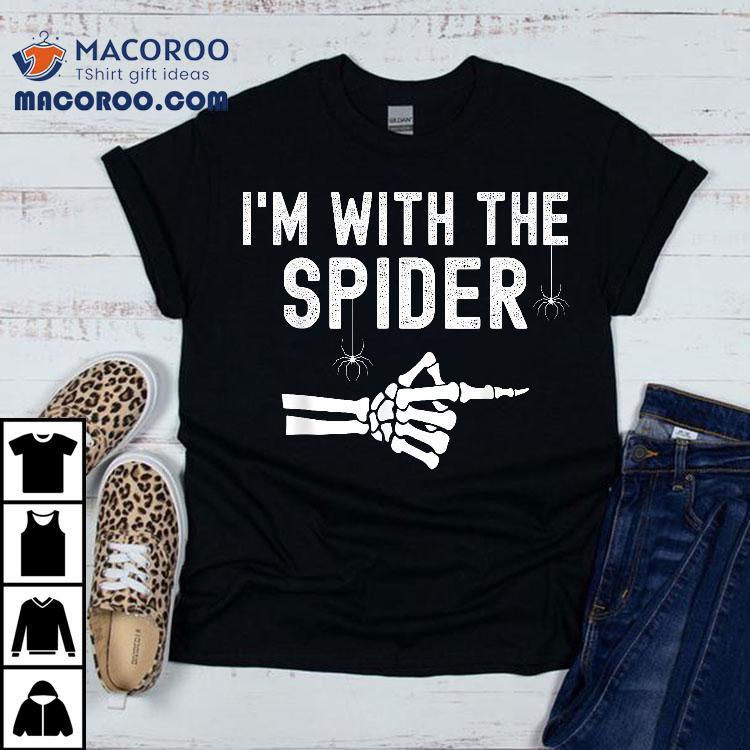 I’m With Spider Funny Skeleton Halloween Couples Matching Shirt