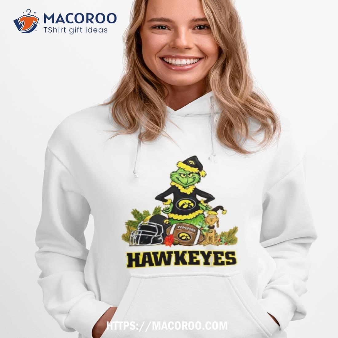 Lovely Christmas t-shirt for Hawkeyes fans. Features Santa Grinch and a cute dog. Perfect for the holiday season!