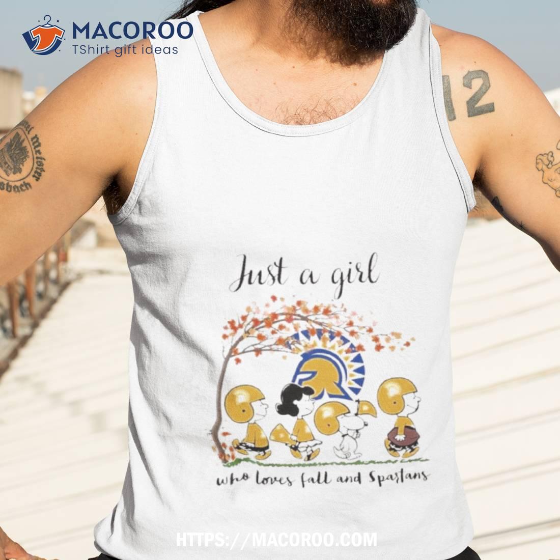 This shirt is perfect for any fan of San Jose State Spartans and Fall! The cute cartoon peanuts design makes it fun and stylish. Highly recommend!