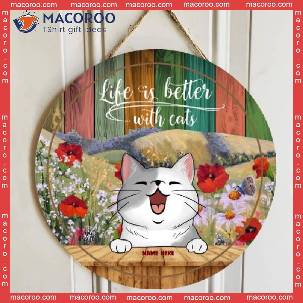 Life Is Better With Cats, Flowers Field, Personalized Funny Cat Wooden Signs