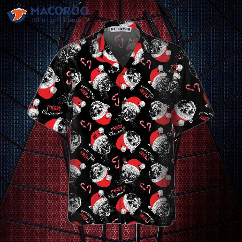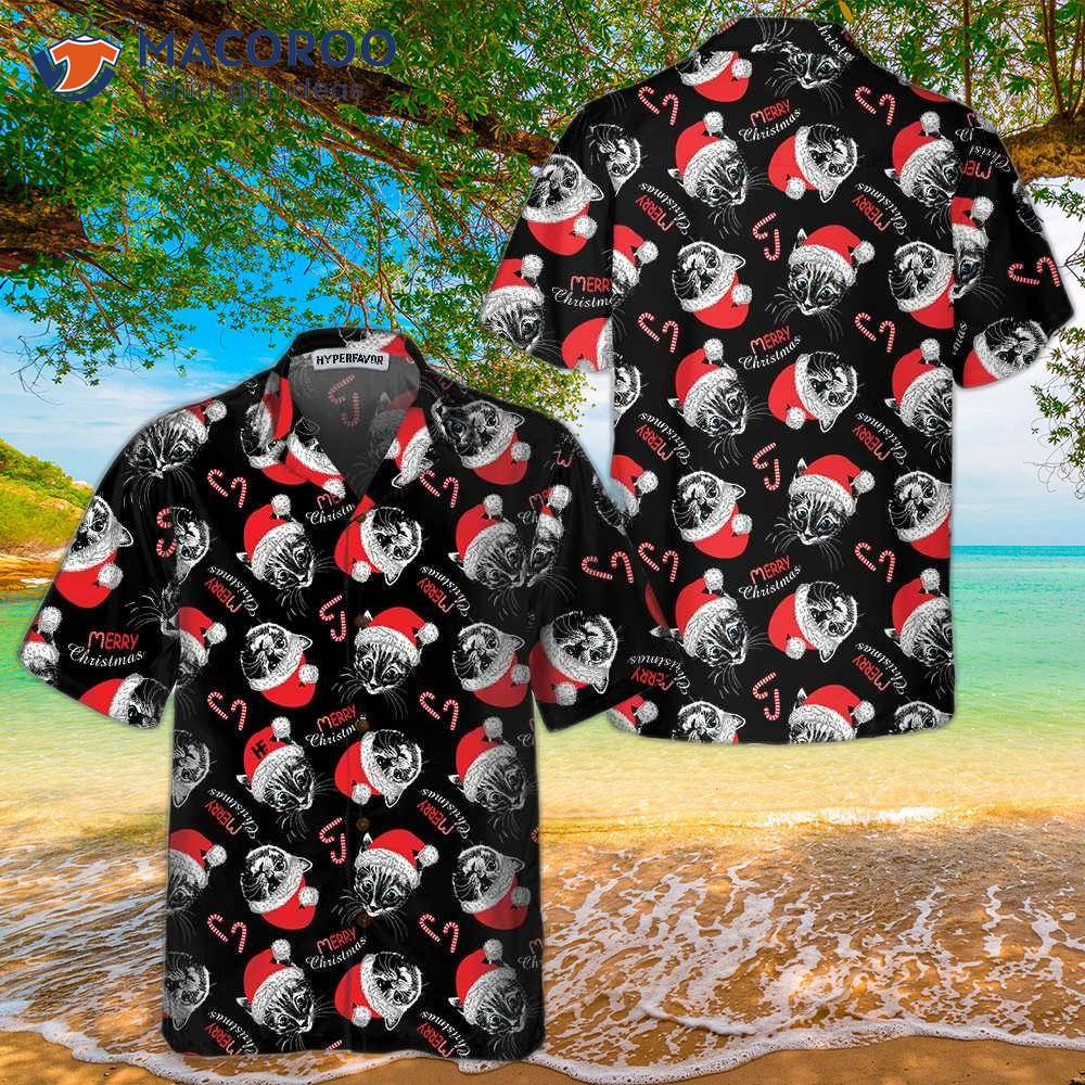 Merry Christmas Black Hawaiian Shirt, Funny Cat Best Xmas Gift Idea