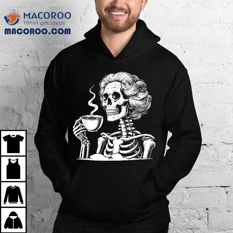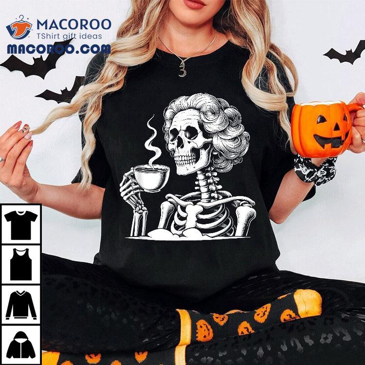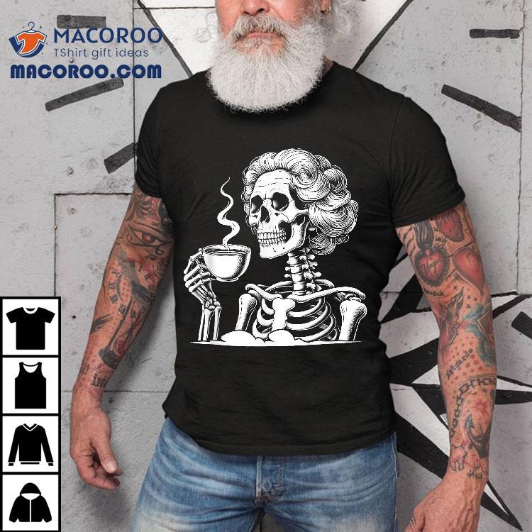 Messy Bun Drinking Coffee For Never Better Skeleton Shirt