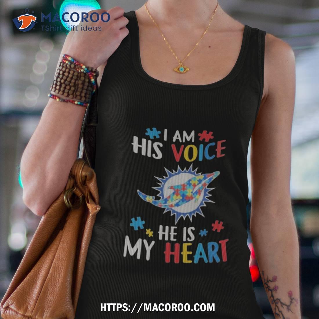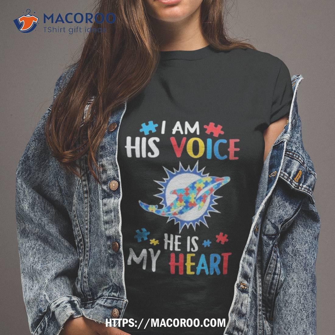 Miami Dolphins Autism Awareness I Am His Voice He Is My Heart 2023 Shirt