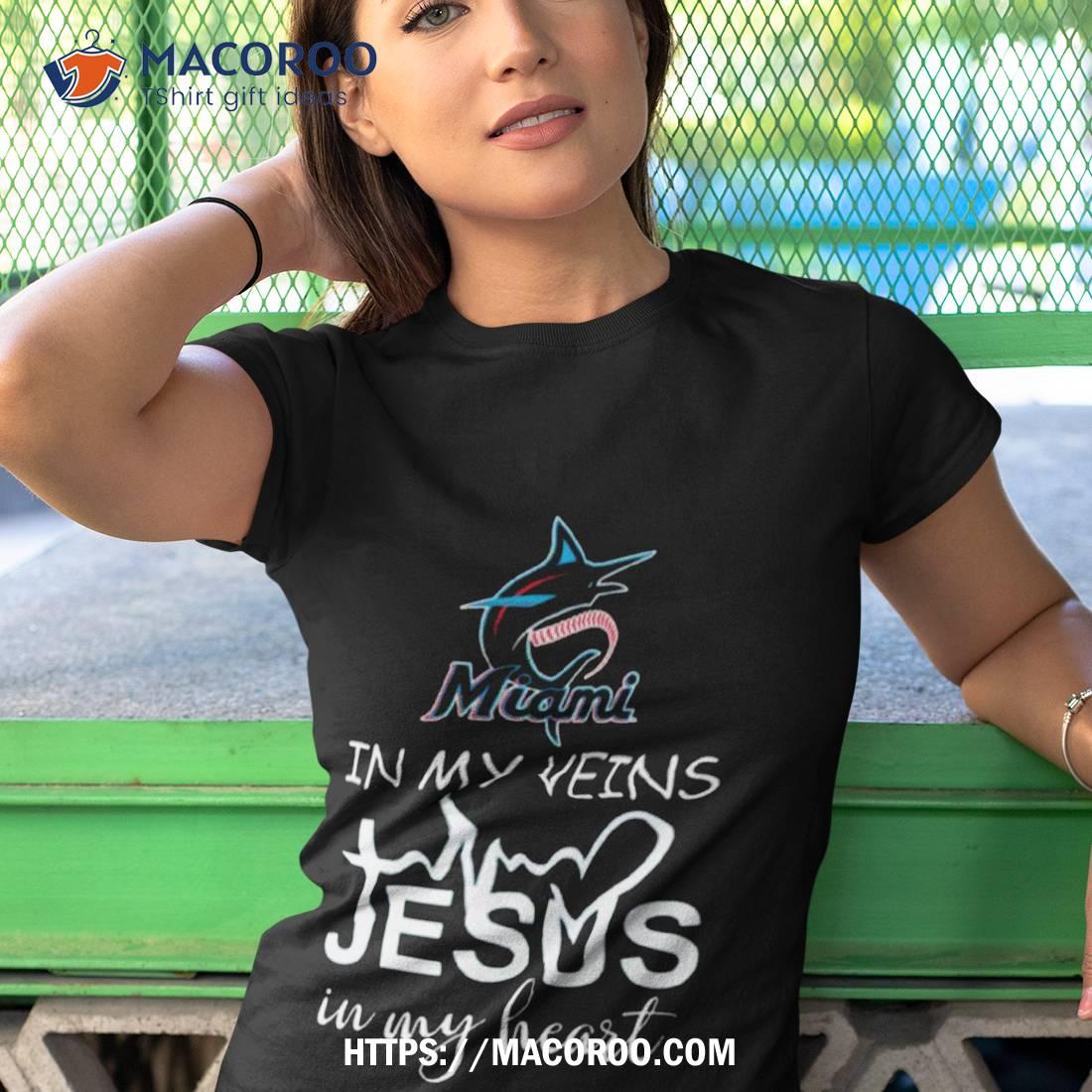 Miami Marlins Logo 2023 In My Veins Jesus In My Hearshirt