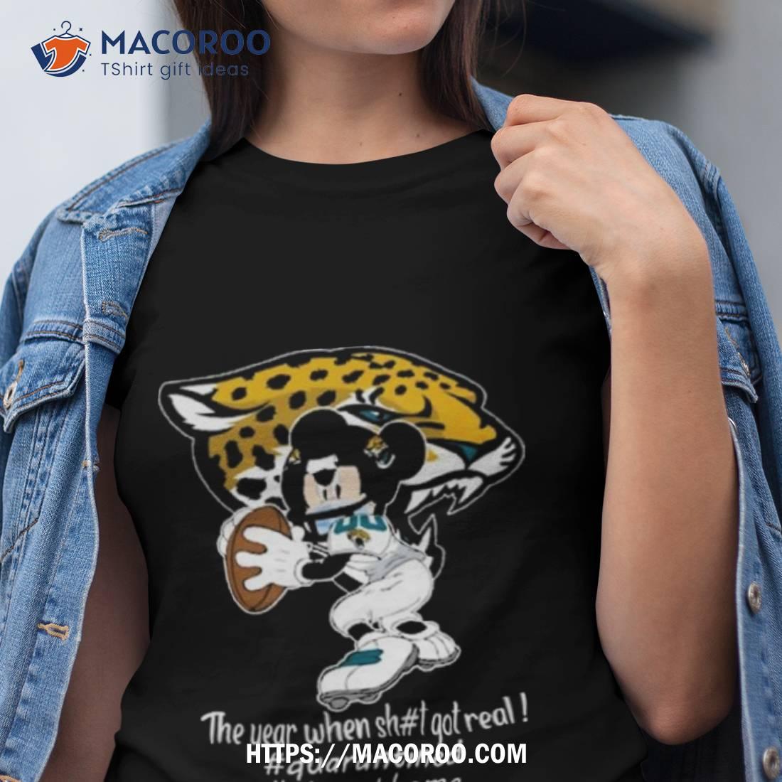 A great shirt for any fan of the Jacksonville Jaguars and Mickey Mouse. Perfect for remembering “the year when shit got real”.