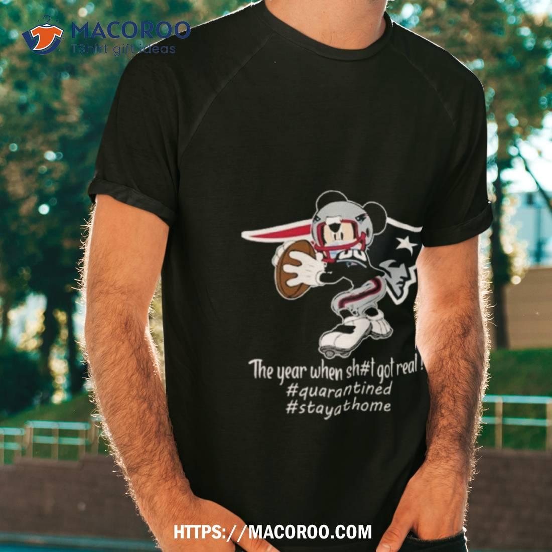 Fun and stylish shirt with Mickey Mouse and New England Patriots logos. Perfect for any fan!