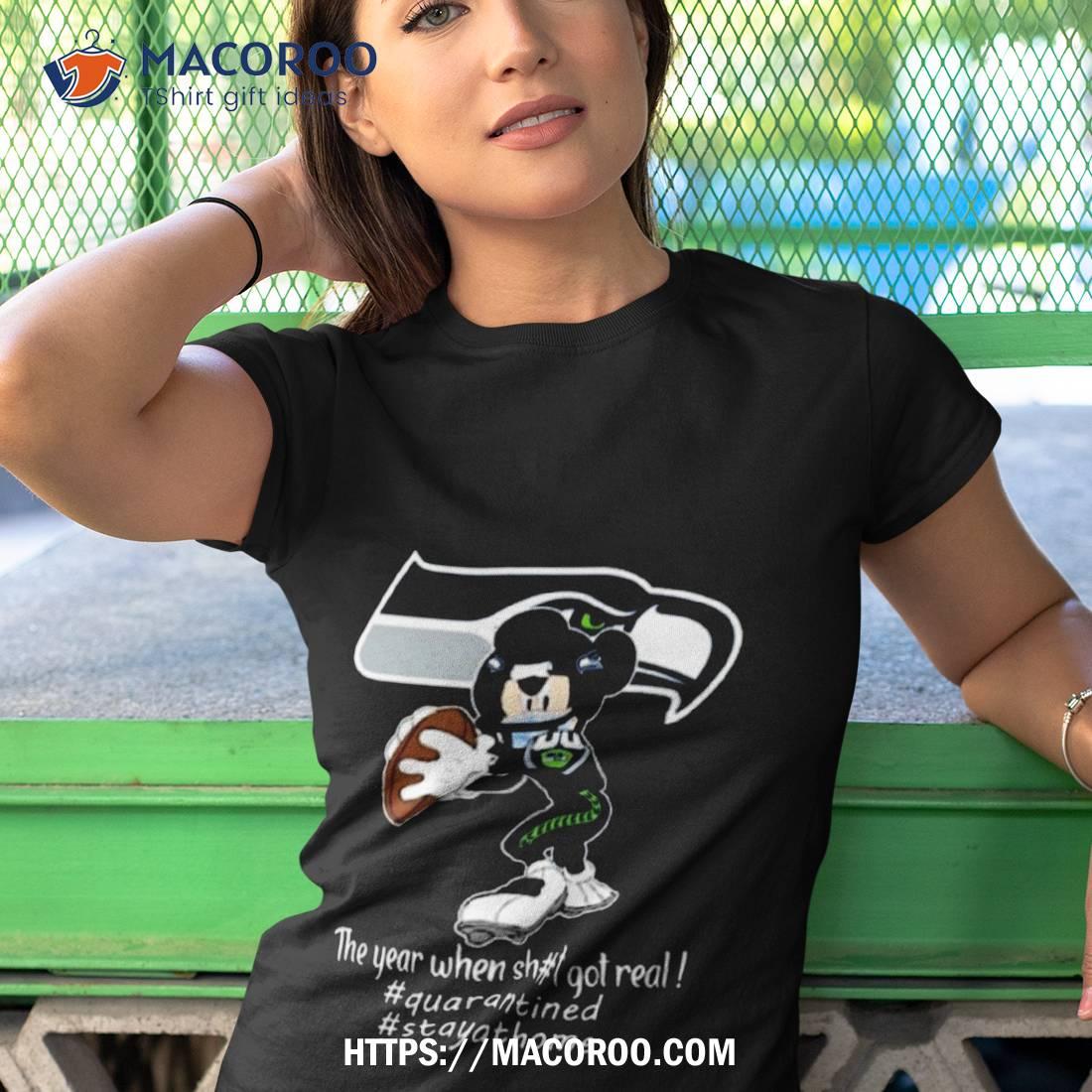 A great shirt for any Seattle Seahawks fan! The classic Mickey Mouse design with “The Year When Shit Got Real” slogan is sure to be a hit.