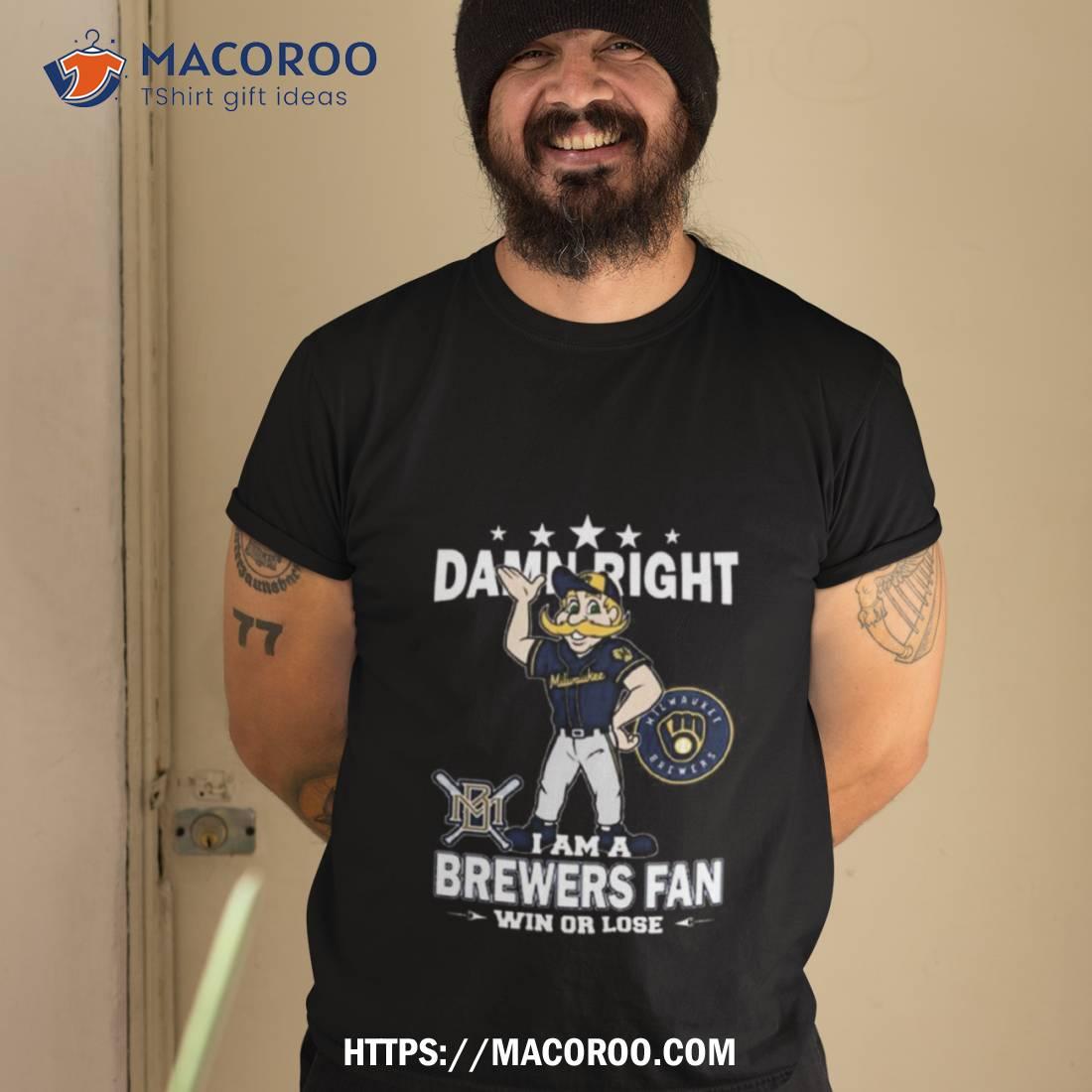 Mlb Damn Right I Am A Milwaukee Brewers Mascot Fan Win Or Lose 2023 Shirt