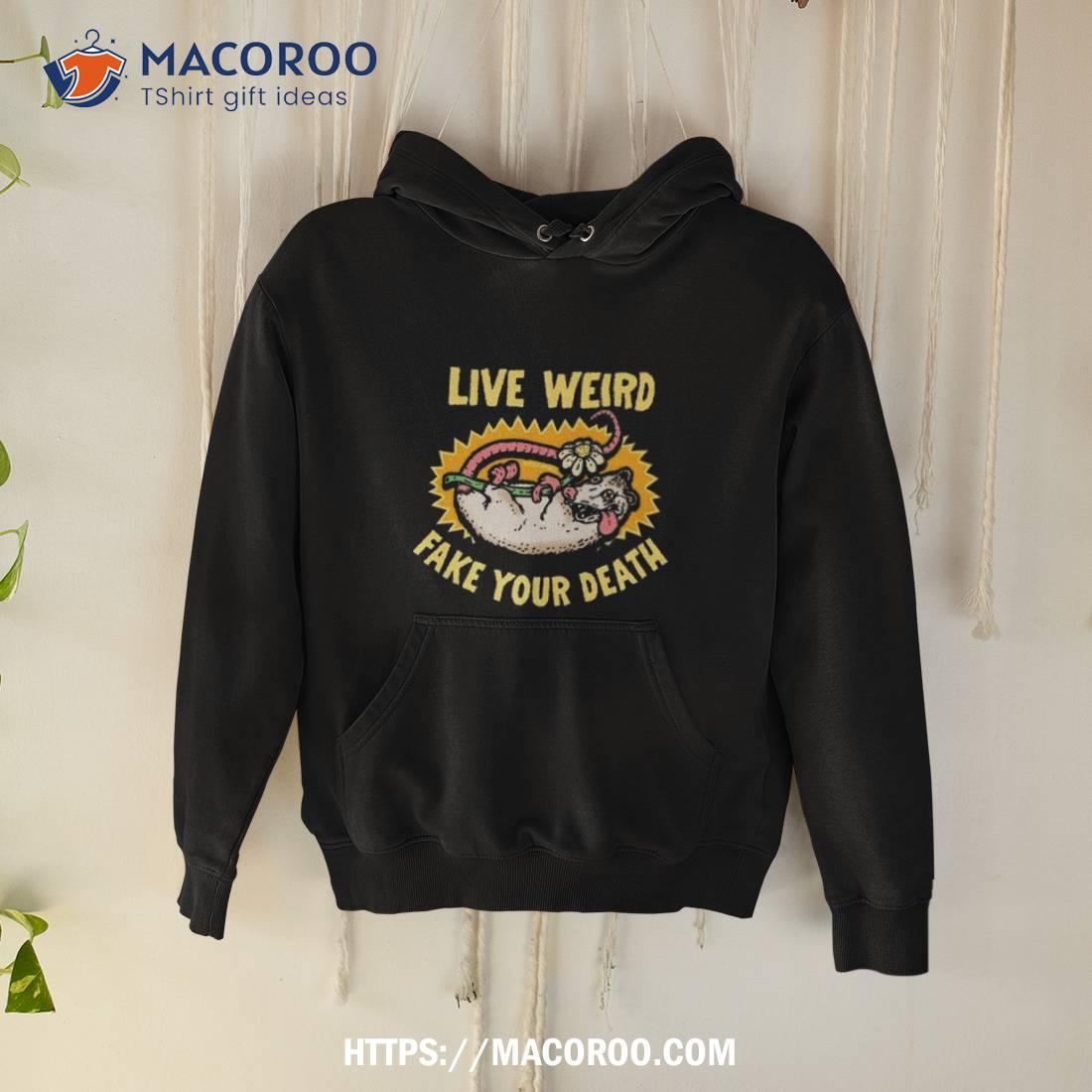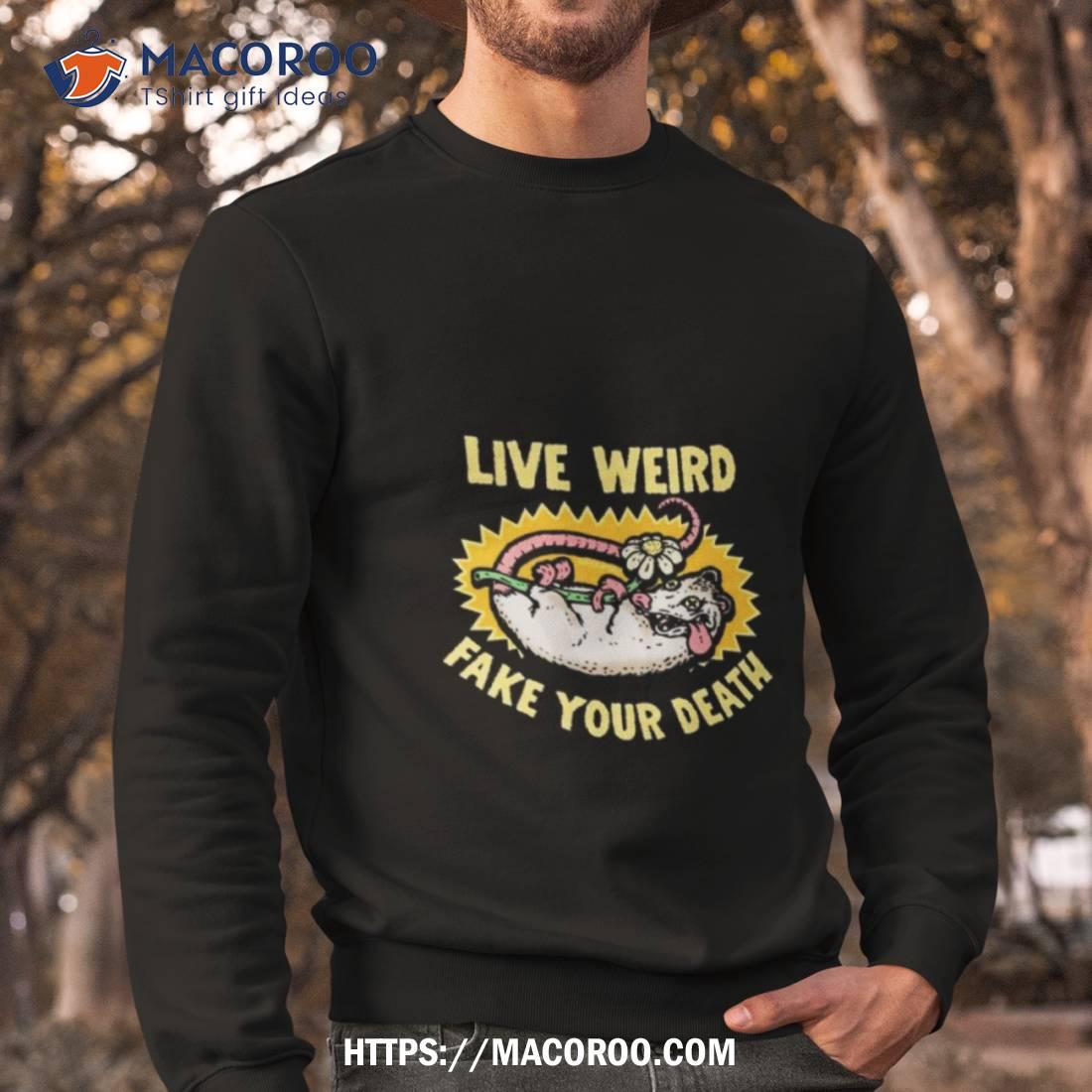 Awesome design! The Murder Apparel Live Weird Fake Your Death T Shirt is a must-have for any fan. Great quality and an eye-catching graphic. Highly recommend!